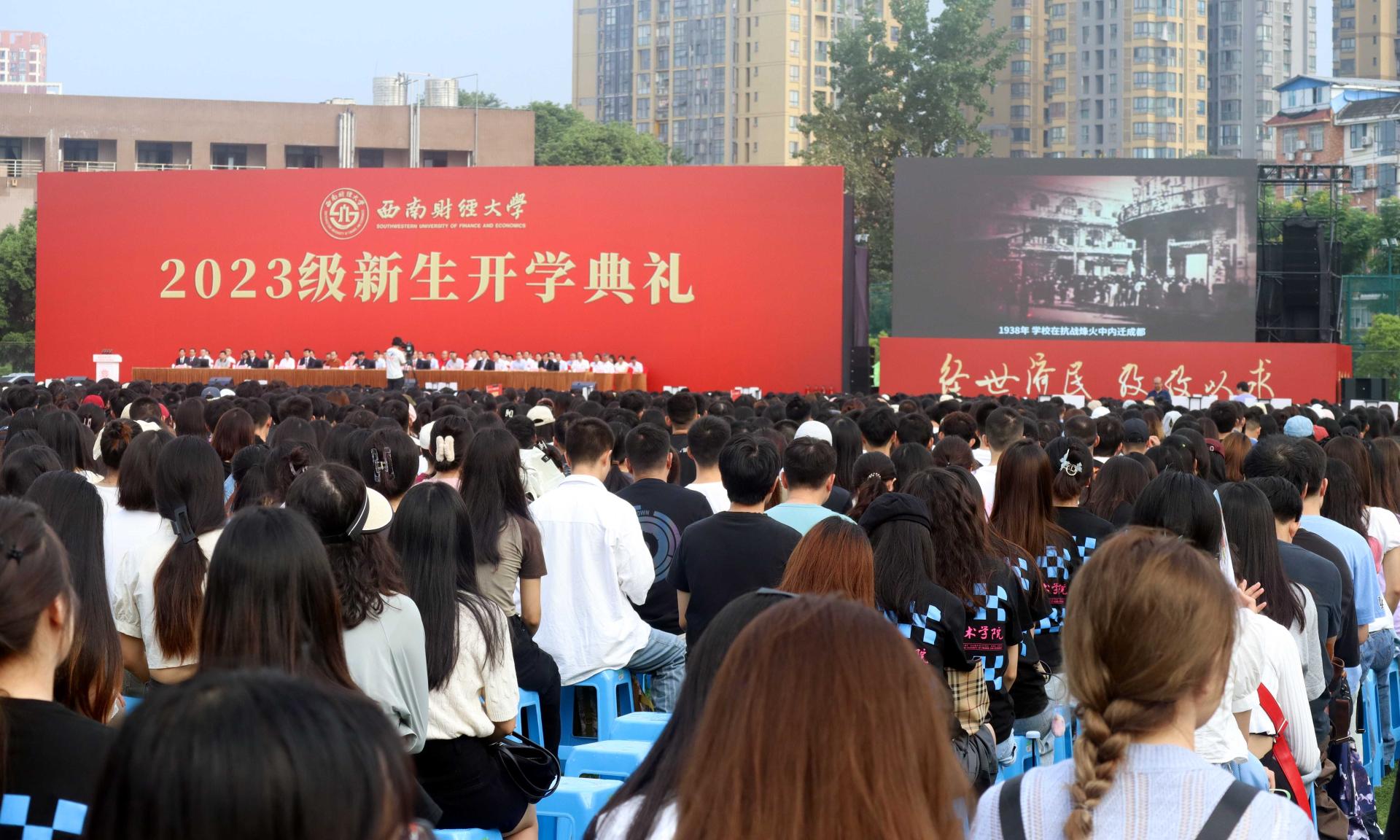 一江芙蓉染秋色,萬千錦繡入畫圖。9月9日,西南財(cái)經(jīng)大學(xué)隆重舉行2023級(jí)新生開學(xué)典禮。來自祖國(guó)和世界各地的7600余名西財(cái)學(xué)子齊聚柳林校區(qū),滿懷美好憧憬,參加莊嚴(yán)儀式,聆聽?zhēng)熼L(zhǎng)寄語,以一堂生動(dòng)思政大課,揚(yáng)起在百年西財(cái)啟航青春的風(fēng)帆,闊步在偉大時(shí)代逐夢(mèng)未來的征程。