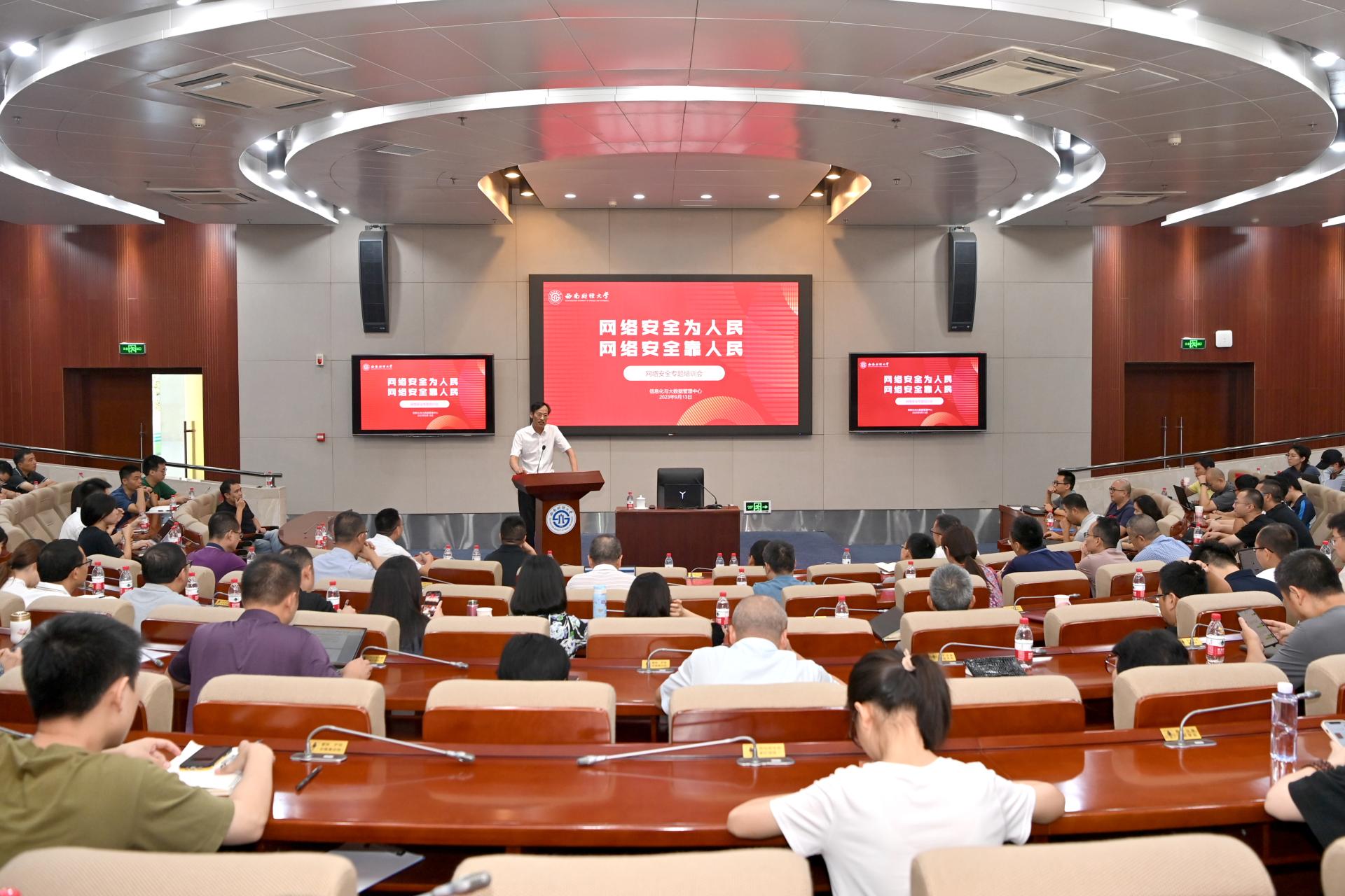 會上,四川省教育信息化與大數據中心副主任周熠和杭州安恒信息技術股份有限公司夏先寧作講座,分別從網絡安全相關法律法規政策、國內外網絡安全形勢與經典案例、管理制度要求、工作生活中的防范意識和防范技能等方面對參會人員進行了講解培訓。