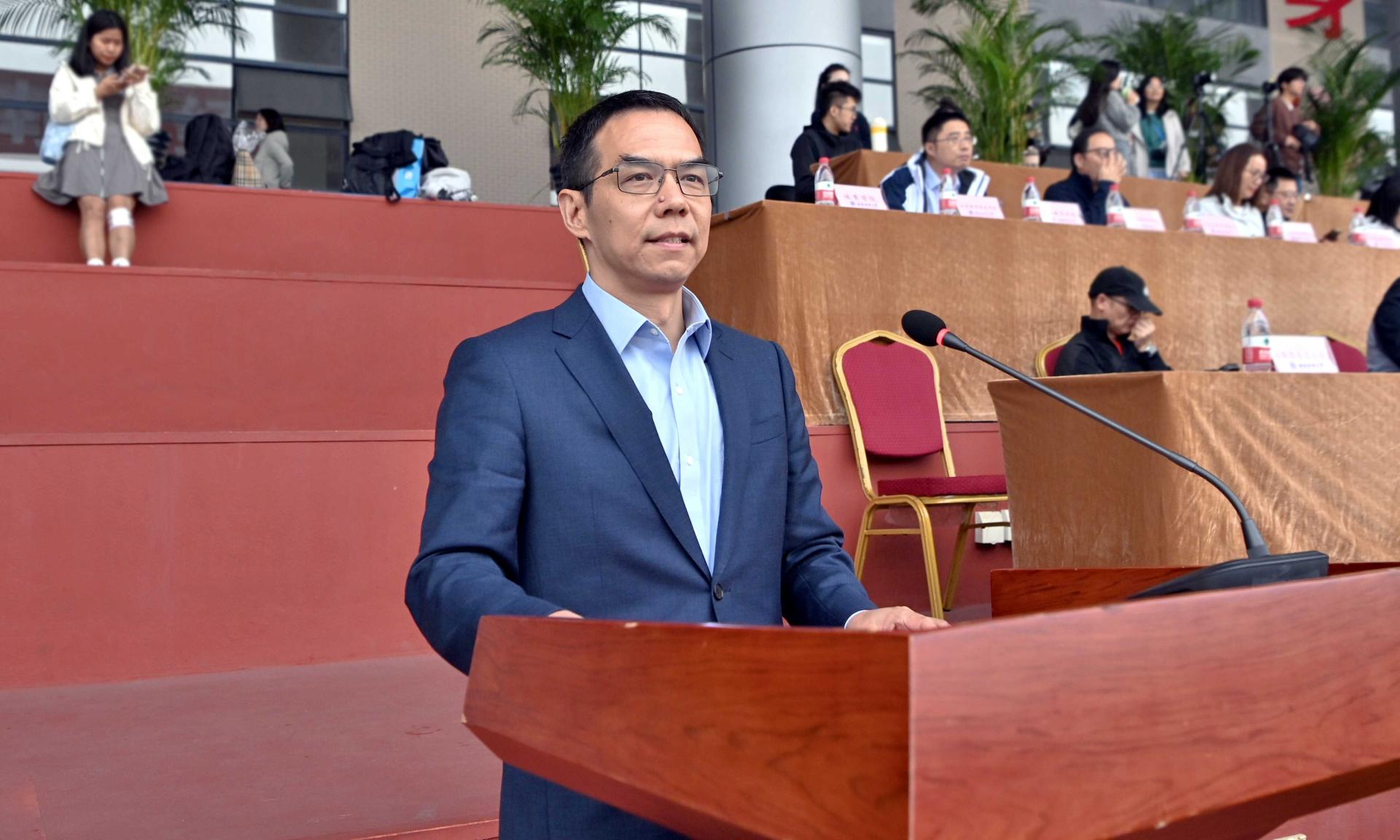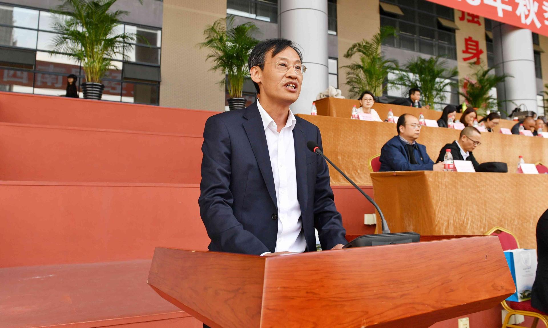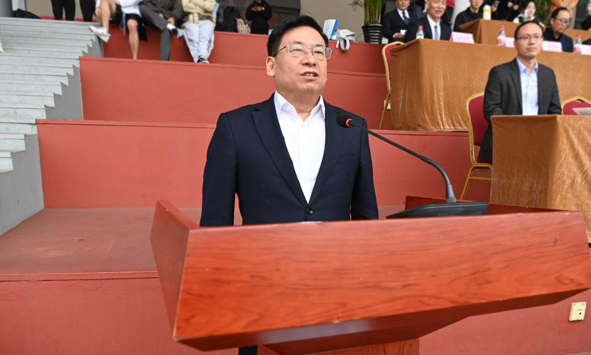 26日8時30分,運動會在晨曦運動場舉行。趙德武宣布運動會開幕,李永強致開幕辭。李永強指出,體育是社會發(fā)展和人類進步的重要標志,承載著國家強盛和民族振興的夢想;體育也是全面落實立德樹人根本任務的基礎性工程,在“五育并舉”中前承德智、后接美勞,是承前啟后的關鍵一環(huán)。學校高度重視體育工作和學生健康成長,把體育當作培養(yǎng)卓越人才的沃土,堅持“健康體育、快樂體育、終身體育”理念,著力構建“1+3體育教學模式”,形成了“一校多品、一院一品、一社一品”體育教育新格局,實現(xiàn)了師生“育體”和學校“育人”的有機結合。李志生主持開幕式。