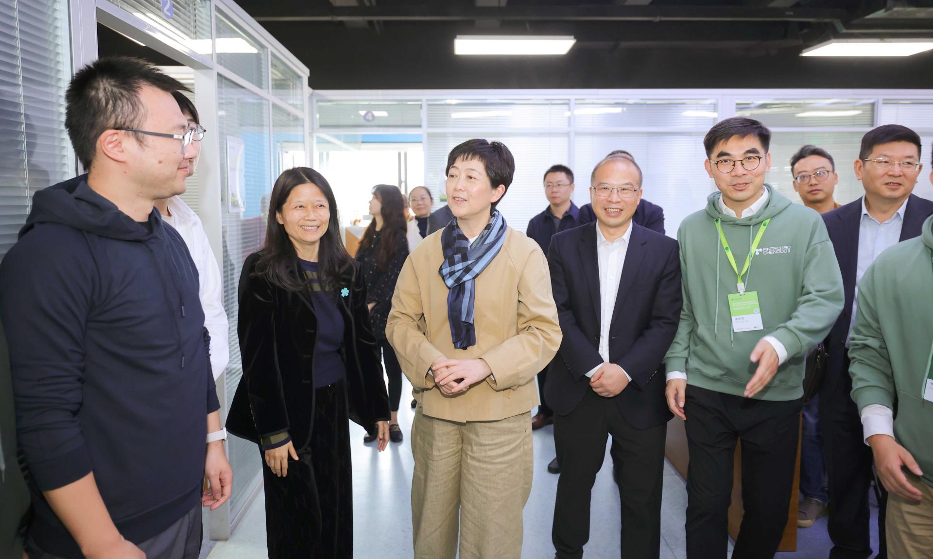 隨后,劉筱柳一行來到金融科技國際聯合實驗室進行實地考察,詳細聽取實驗室五年來的建設成效。實驗室青年科研人員王俊、謝志龍、鄭羽副教授匯報了科技部重大攻關課題、新一代智能因子數據庫、新型金融云智能原生系統等創新性工作成果,劉筱柳充分肯定實驗室的建設成效,并表示要進一步加強雙方合作和探索,為政府與高校聯合建立高水平科研實驗室探索新的路徑,同時鼓勵青年科技人員勇于創新。