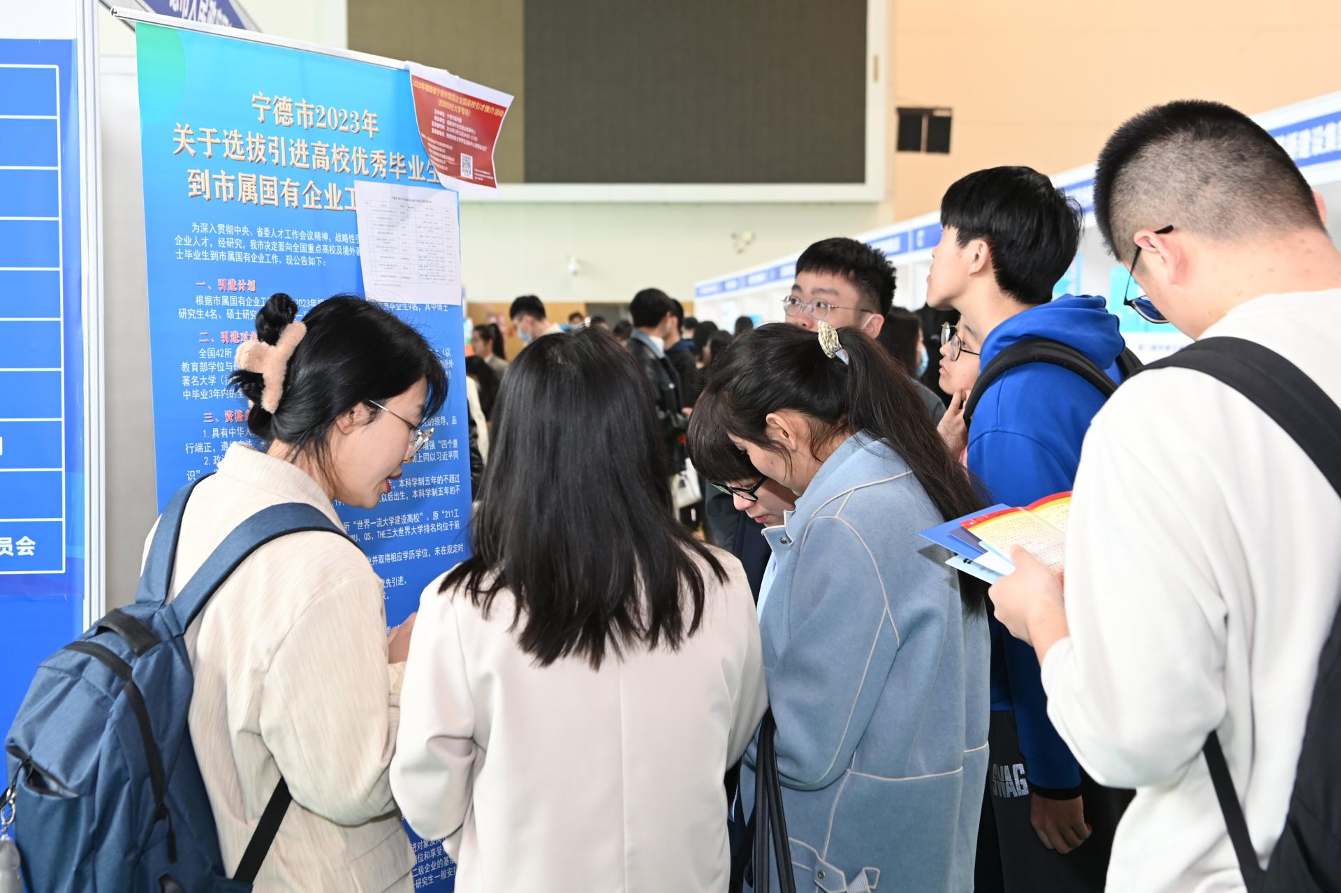 本次雙選會共吸引來自全國各地的212家用人單位參會,行業覆蓋金融業、教育、制造業、建筑業、租賃和商務服務業、公共管理、社會保障和社會組織等,提供經營管理類、市場營銷類、財務類、人力資源管理類、計算機互聯網類等就業崗位2300余個,需求人數12300余人。參會用人單位中有國企73家,上市公司55家,世界500強企業46家,典型代表企業包括建設銀行、廣發證券、太平人壽、廈門國貿、特變電工、中航成飛、長安汽車、中國電建、通威股份等,宜賓市委組織部、寧德市國資委、廈門人才集團等組團參會。