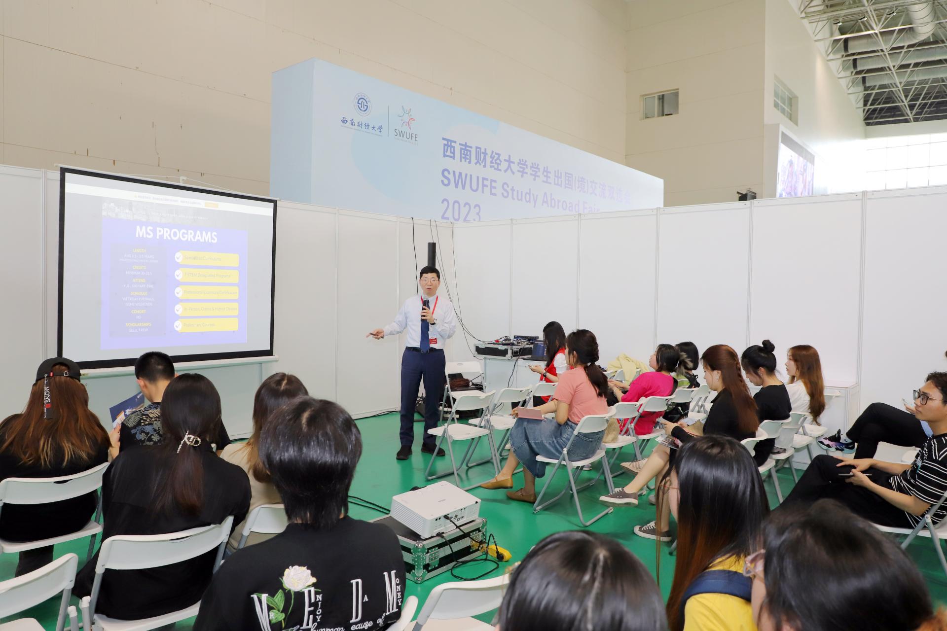 本次雙選會是學校全面開啟、全面加強國際交流與合作的重要舉措,在前六屆雙選會成功舉辦的基礎上,本次雙選會設立展位42個,吸引來自10余個國家和地區的23所高校到校參展,包括10所三大認證(EQUIS,AACSB,AMBA)高校和4所世界百強名校。雙選會上,各學院(研究院)、相關職能部門和海外高校零距離、面對面為西財學子就本科及研究生公派項目、交換項目、短期游學、雙學位項目、碩士學位項目等各種項目進行了咨詢答疑。現場舉行了12場宣講會,為同學們推介了一大批優質留學目的地和高校。