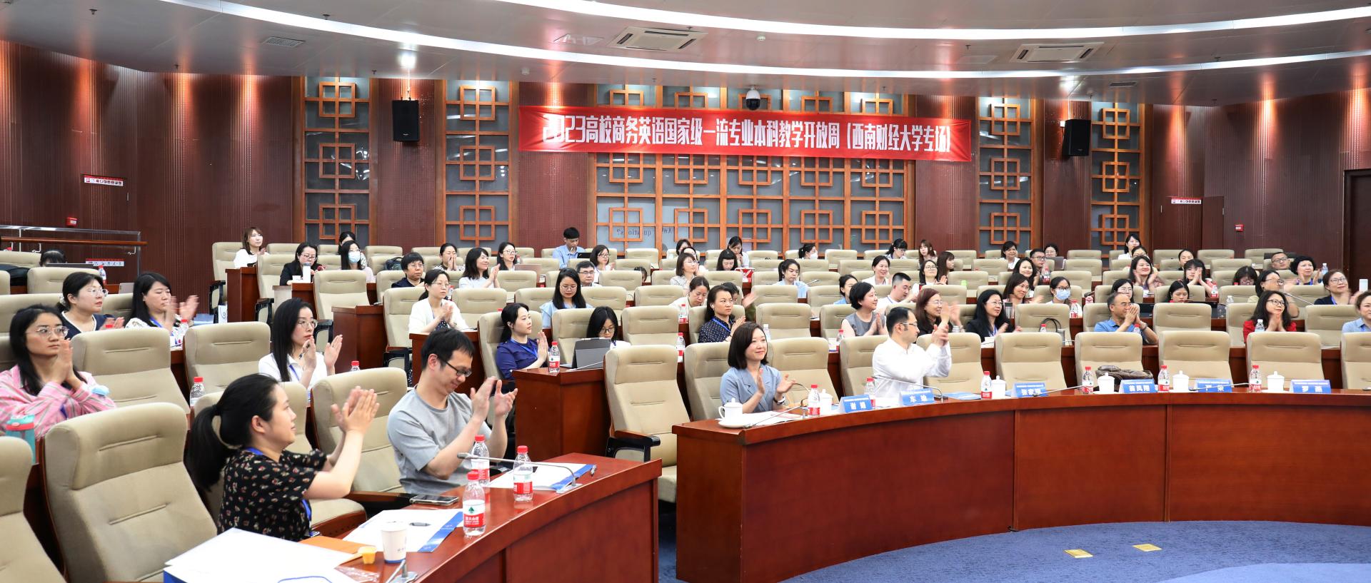 為探尋新時代背景下高校商務英語教學改革創新的路徑方法,有效促進優質教育資源的融合共生、優勢互補、協同發展,4月19-21日,2023全國高校商務英語國家級一流專業本科教學開放周活動在我校柳林校區舉行。活動由中國對外貿易經濟合作企業協會商務英語專業工作委員會主辦,我校外國語學院承辦,來自北京語言大學、上海財經大學、中南財經政法大學、云南財經大學等高校商務英語院系的負責人和專業教師100余人通過公開課、研討課、專家講座等多種形式,共謀商務英語一流專業和一流課程建設。學校黨委常委、副校長尹慶雙教授代表學校致開幕詞。