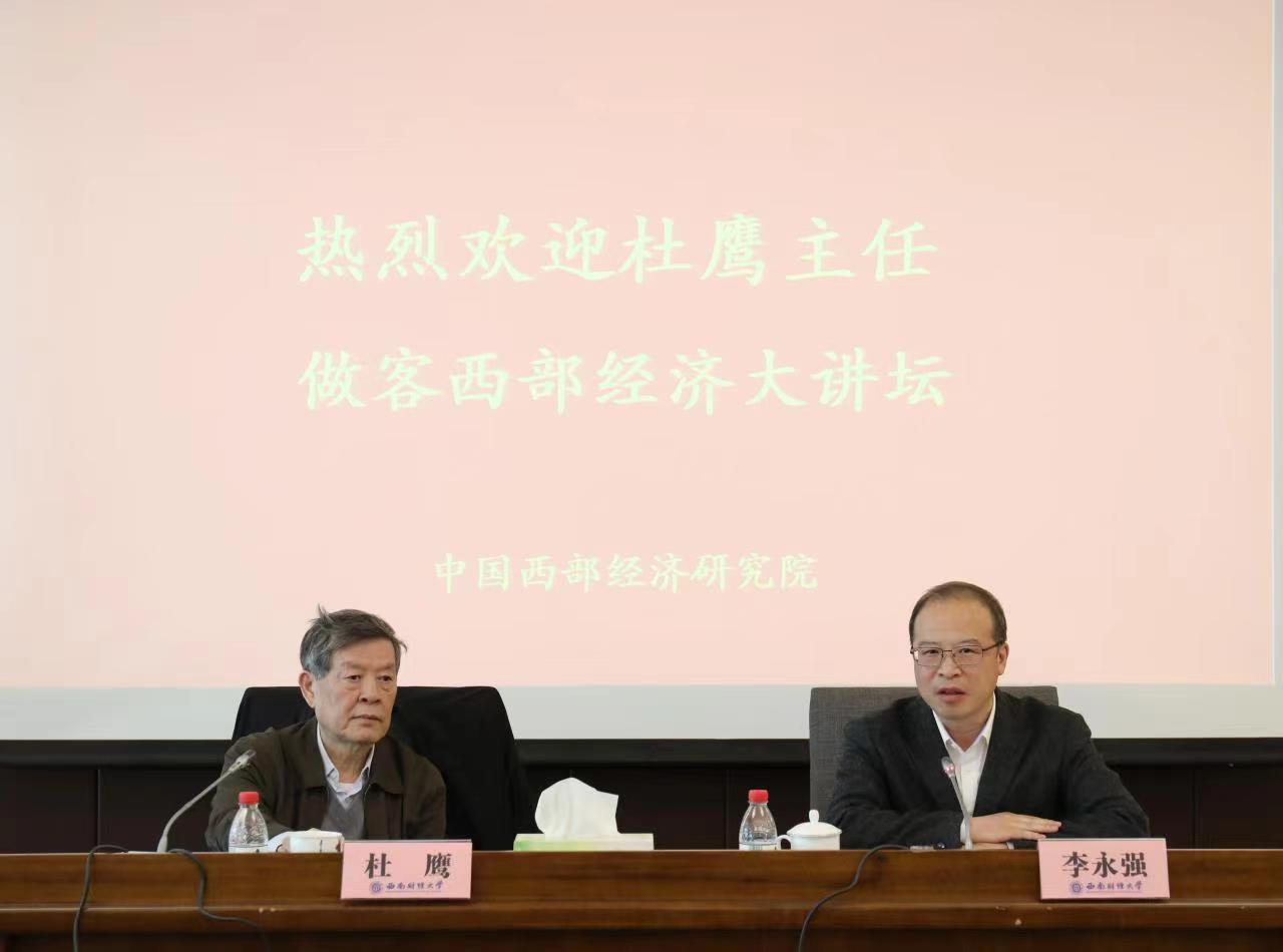 4月23日,國家發展和改革委員會原副主任、第十二屆全國政協委員、國務院參事室特約研究員杜鷹受邀來我校“西部經濟大講壇”作糧食安全與農業現代化學術報告。學校黨委副書記、副校長李永強主持講座。學校師生代表150余人參加講座。