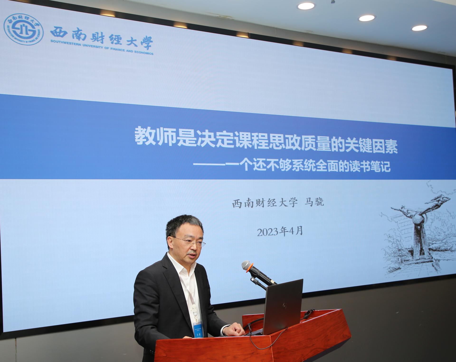 馬驍以“教師是決定課程思政質量的關鍵因素”為題,分享了課程思政建設的根本遵循、課程思政的內容,并指出教師是課程思政建設質量的決定性因素;高輝以“理工科高校經濟學專業課程思政的問題指向與路徑選擇”為題,分享了成都理工大學經濟學專業課程思政建設的問題與難點,并對課程思政建設的重點和完善課程思政考評體系提出思考;史仕新從課程思政建設的制度建設、專業人才培養體系設置、課程群案例集構建和團隊建設出發,分享了內江師范學院在課程思政建設方面的實踐經驗;鄭長德分享了西南民族大學經濟學發展歷程、課程思政建設的基本思路與內容,以及對中國經濟學的感悟與思考;鄧菊秋以“‘以人民為中心’的理念植根于心中”為題,分享了對課程思政的認識、思政與教學融合的探索等;陳師以“《宏觀經濟學》課程思政教學實踐與思考”為題,分享了課程思政建設的指導思想、教學目標、建設思路、課程實踐及相關思考。