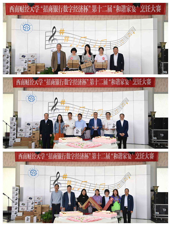 本次比賽經(jīng)過二級工會的精心籌備和組織,21支參賽隊(duì)伍在1個小時內(nèi)需完成“三菜一湯”的制作。比賽現(xiàn)場氛圍熱烈,選手們用嫻熟的烹飪技藝,將川菜、湘菜、粵菜等全國各地菜肴紛紛呈現(xiàn),經(jīng)過評委認(rèn)真評判,機(jī)關(guān)第四分工會制作的“賡續(xù)年華 相約98”獲得一等獎,作品色香味俱全,巧妙寓意西財98載風(fēng)華正茂;統(tǒng)計學(xué)院工會“助力新財經(jīng)戰(zhàn)略升級”、后勤服務(wù)總公司工會“匠心后勤 美好SWUFE”獲得二等獎;外國語學(xué)院工會“蒸蒸日上”、馬克思主義學(xué)院工會“一馬當(dāng)‘鮮’”、經(jīng)濟(jì)學(xué)院“新財經(jīng)故事”獲得三等獎。法學(xué)院工會、人文與藝術(shù)學(xué)院工會、經(jīng)濟(jì)與管理研究院工會的作品分獲“最美搭配”“最佳創(chuàng)意”“最佳風(fēng)尚”獎。數(shù)學(xué)學(xué)院、社會發(fā)展研究院、繼續(xù)(網(wǎng)絡(luò))教育學(xué)院、中國西部經(jīng)濟(jì)研究院和金融學(xué)院、中國金融研究院五個工會獲評優(yōu)秀組織獎。招商銀行成都分行為本次活動提供了大力支持和獎品贊助,現(xiàn)場還送出百份幸運(yùn)觀眾獎。