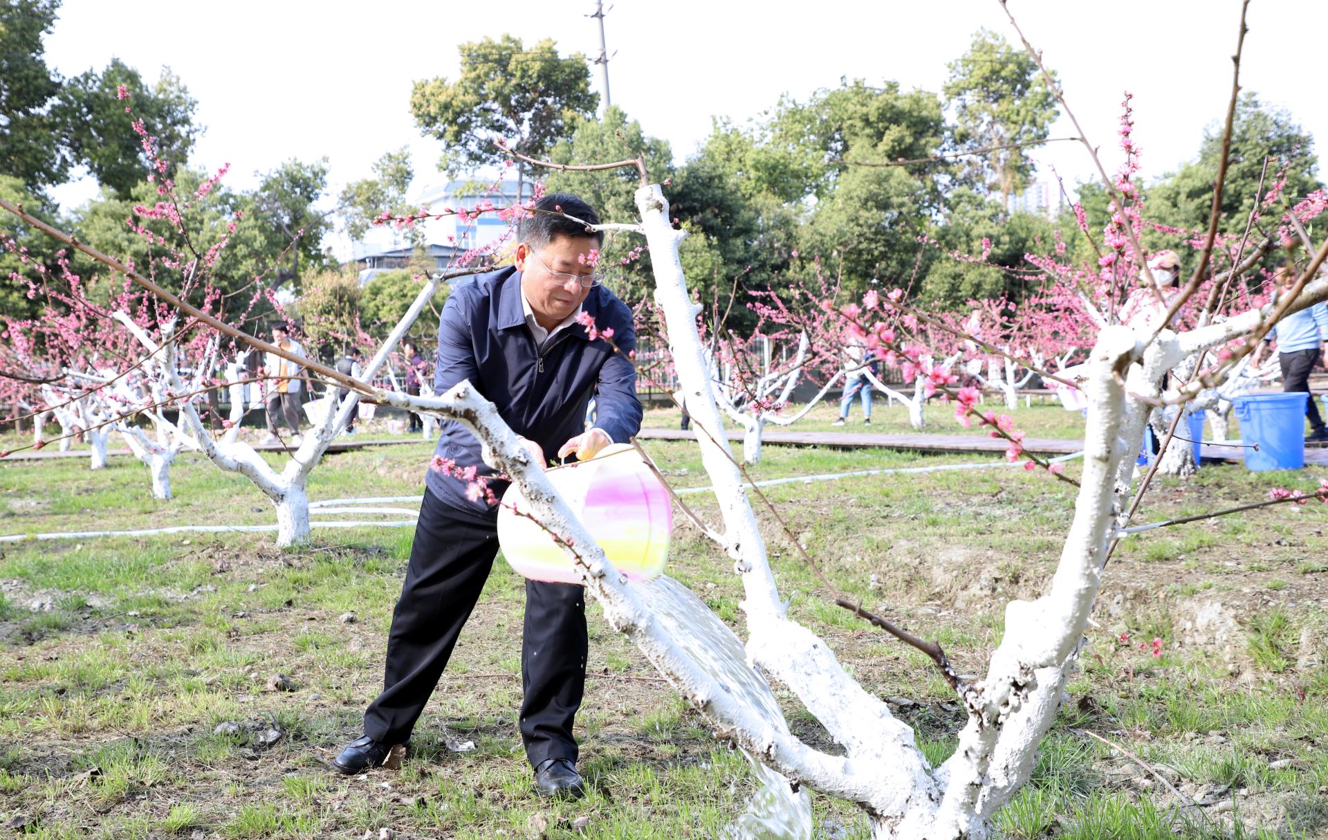 下午4時,植樹節澆水施肥活動在柳林和光華校區同時舉行。在柳林“耕讀田園”果蔬種植勞動實踐基地,春桃翻霞,人潮涌動,一派農忙景象。在校領導的帶領下,師生們打水、分水、擔水、灌園,穿梭于壟上小道,澆灌希望的田園,充分享受勞動帶來的快樂?!叭址N樹七分管,十分成活才保險?!痹诠馊A校區光華樓西側草坪,師生們在園藝師傅的示范下熱火朝天地分頭行動,對玉蘭、香樟、桂樹等園木綠植精準施肥灌溉,為綠色校園貢獻力量。