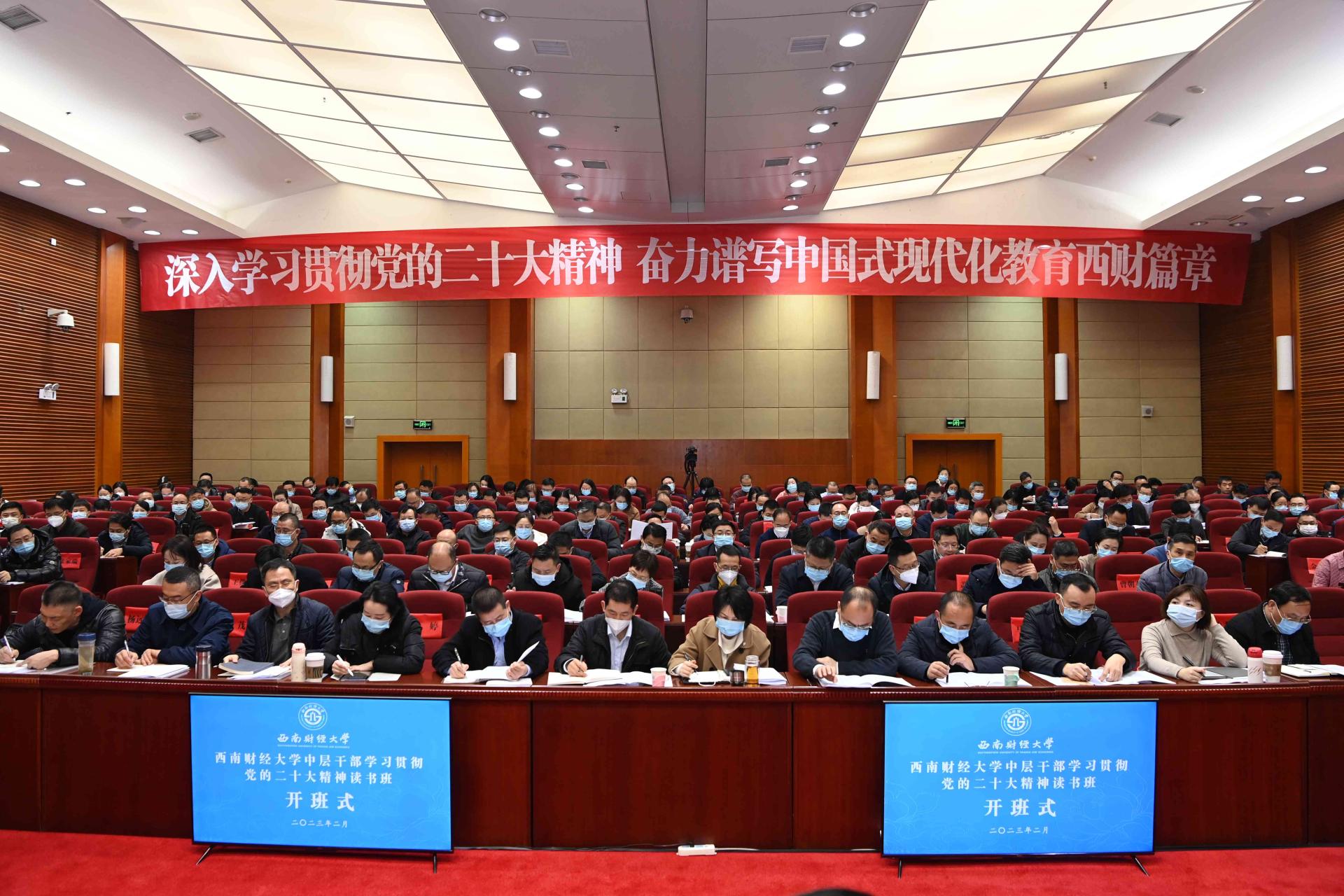 2月20日至24日,學校舉行中層干部學習貫徹黨的二十大精神讀書班,主要任務是深入學習貫徹黨的二十大精神、全國教育工作會議精神、省委十二屆二次全會精神和學校十三屆五次黨代會精神,加強換屆后中層領導班子和干部隊伍建設,更好領會把握學校黨委工作部署,全面推進“新財經”戰略升級,著力推進一流學科培優、財經科技創新、人才引領支撐,進一步統一思想、統一行動,奮力書寫中國式現代化教育西財篇章。