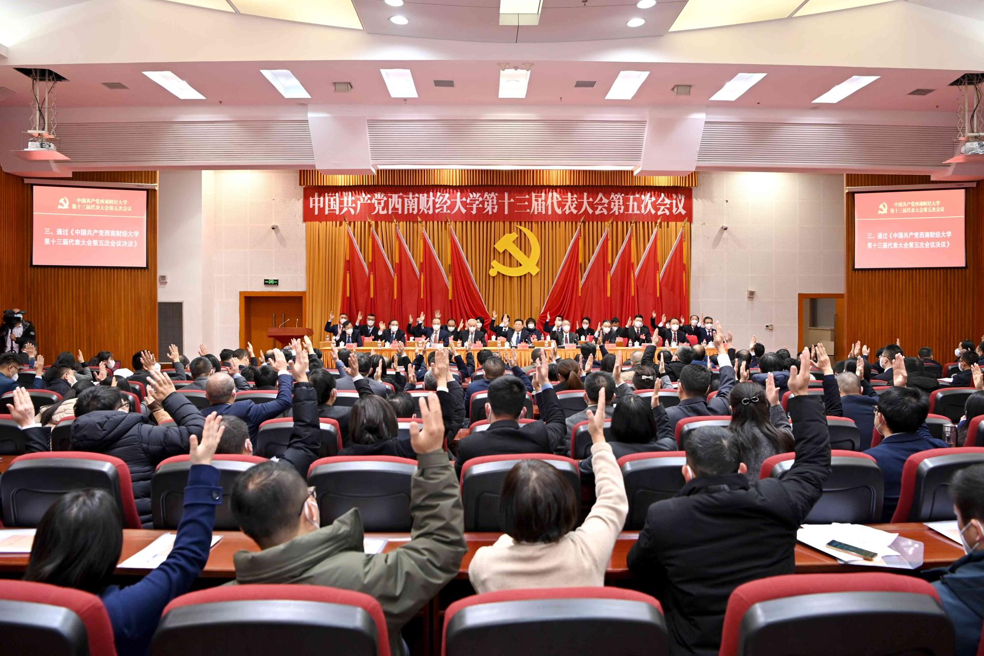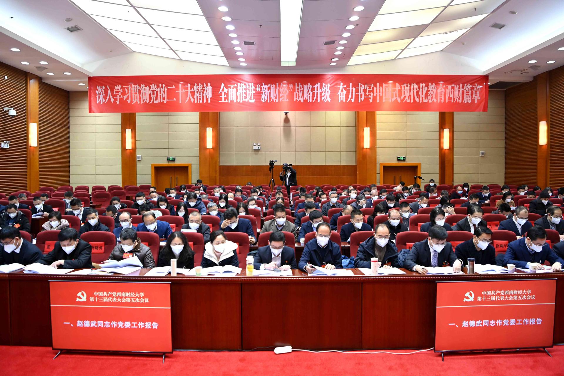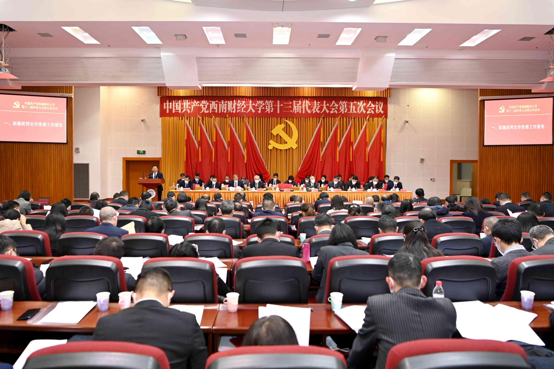 1月16日,中國共產黨西南財經大學第十三屆代表大會第五次會議在學校柳林校區舉行。大會的主題是,堅持以習近平新時代中國特色社會主義思想為指導,深入學習貫徹黨的二十大精神,全面落實科教興國戰略部署,全面推進“新財經”戰略升級,著力推進一流學科培優、財經科技創新、人才引領支撐,為加快建設教育強國、科技強國、人才強國貢獻西財力量,在新征程上奮力譜寫中國式現代化教育西財篇章。