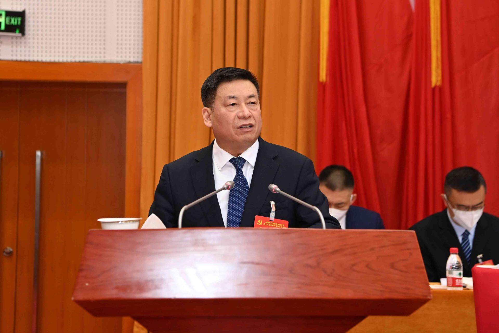 大會指出,一年來,學校黨委堅定以習近平新時代中國特色社會主義思想為指導,全面貫徹黨的教育方針,堅持社會主義辦學方向,落實立德樹人根本任務,堅持穩中求進工作總基調,堅持系統觀念,以第二輪“雙一流”建設為引領推動學校高質量發展,以高質量黨建和思想政治工作為學校發展提供堅強保證,統籌疫情防控和改革發展,統籌發展和安全,團結帶領全校師生員工重點抓好迎接學習宣傳貫徹黨的二十大、扎實推進第二輪“雙一流”建設、寫好人事分配制度改革和學科調整優化“后半篇文章”三件大事,扎實開展提升黨建工作質量、強化思想政治引領、構建高質量人才培養體系、提升學術創新與服務國家能力、建設一流財經人才高地、推進高水平教育對外開放、優化學生教育管理服務、提升內部治理效能、優化資源保障與配置機制、推進文化與民生事業十項工作,推動學校各項事業取得新的重要進步。