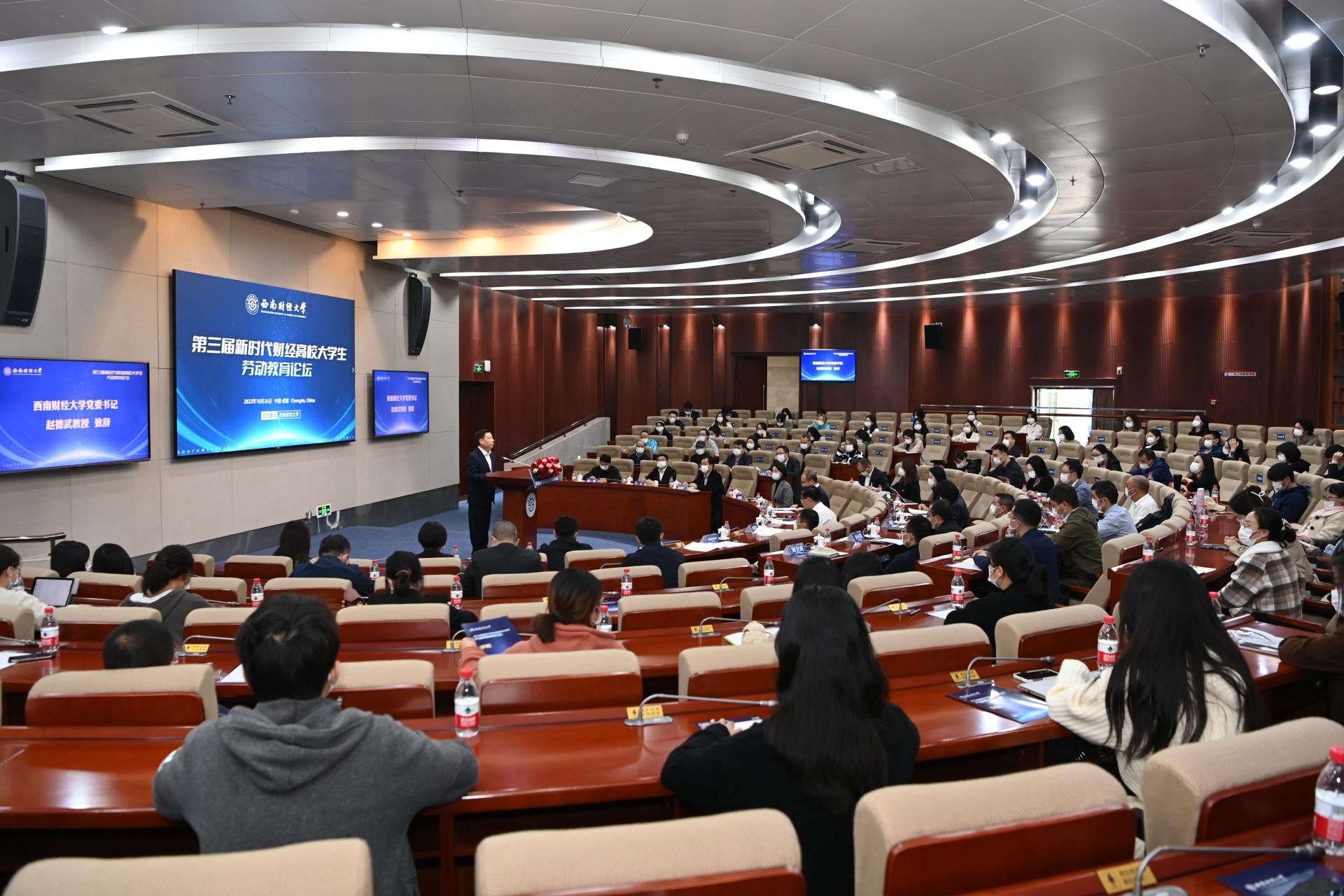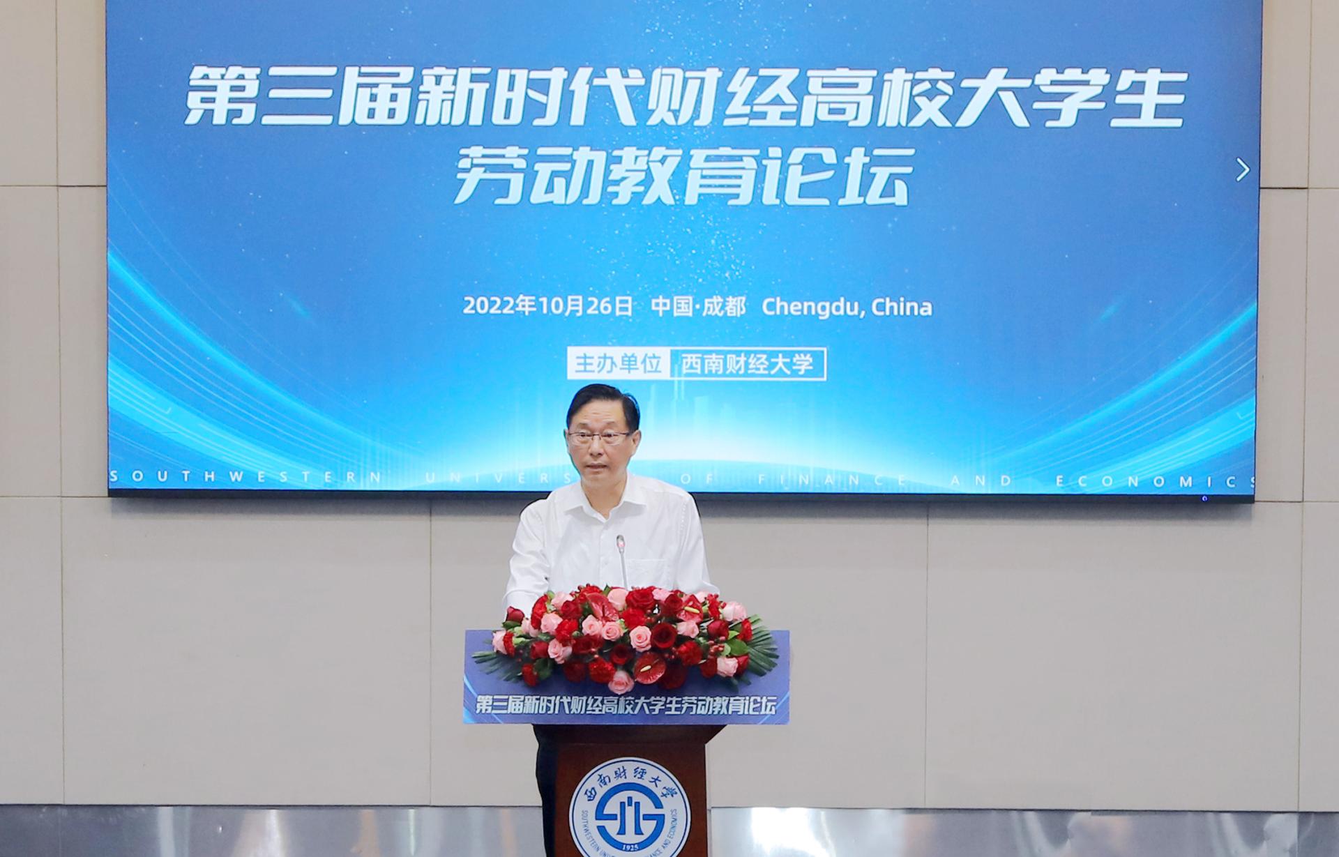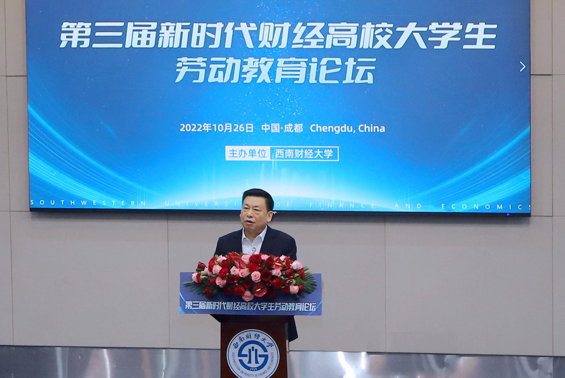 盛世金秋逢盛會,奮斗有為正當時。10月26日,在黨的二十大勝利閉幕之際,第三屆新時代財經高校大學生勞動教育論壇在學校舉行,來自全國24所高校的140余名領導專家和師生代表參加論壇。學校黨委書記趙德武,中共四川省委教育工委委員、教育廳黨組成員、副廳長陳朝先在開幕式上致辭,黨委副書記、副校長李永強主持論壇。本屆論壇采取線上線下相結合的方式,深入探索契合財經高校特質的勞動教育模式。