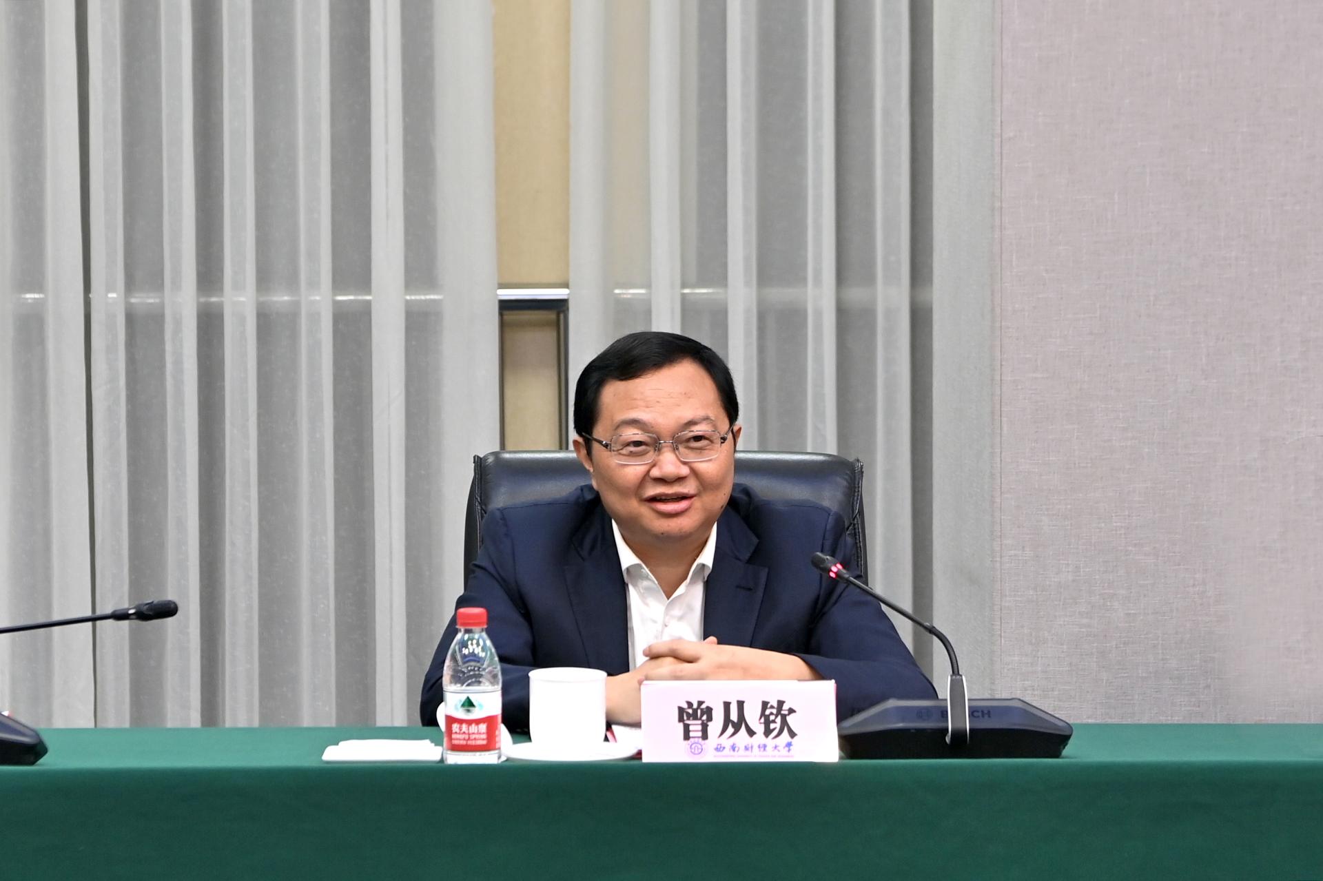 曾從欽向學校全體師生表示親切問候。他指出,五糧液集團與學校簽訂戰略合作協議,標志著雙方合作邁上新臺階,開啟校企合作新征程。特別是,五糧液將與學校共同發起設立“五糧液西南財大教育基金”,以支持學校教育事業發展,并希望以此為契機,雙方全面深化合作,打造校企合作的新典范。他表示,雙方未來將圍繞深化人才培養、加強產學研融合、加快推進業務交流三方面開展全面深入合作,并衷心祝愿學校未來在建設財經特色鮮明的世界一流大學新征程中不斷取得新成績。