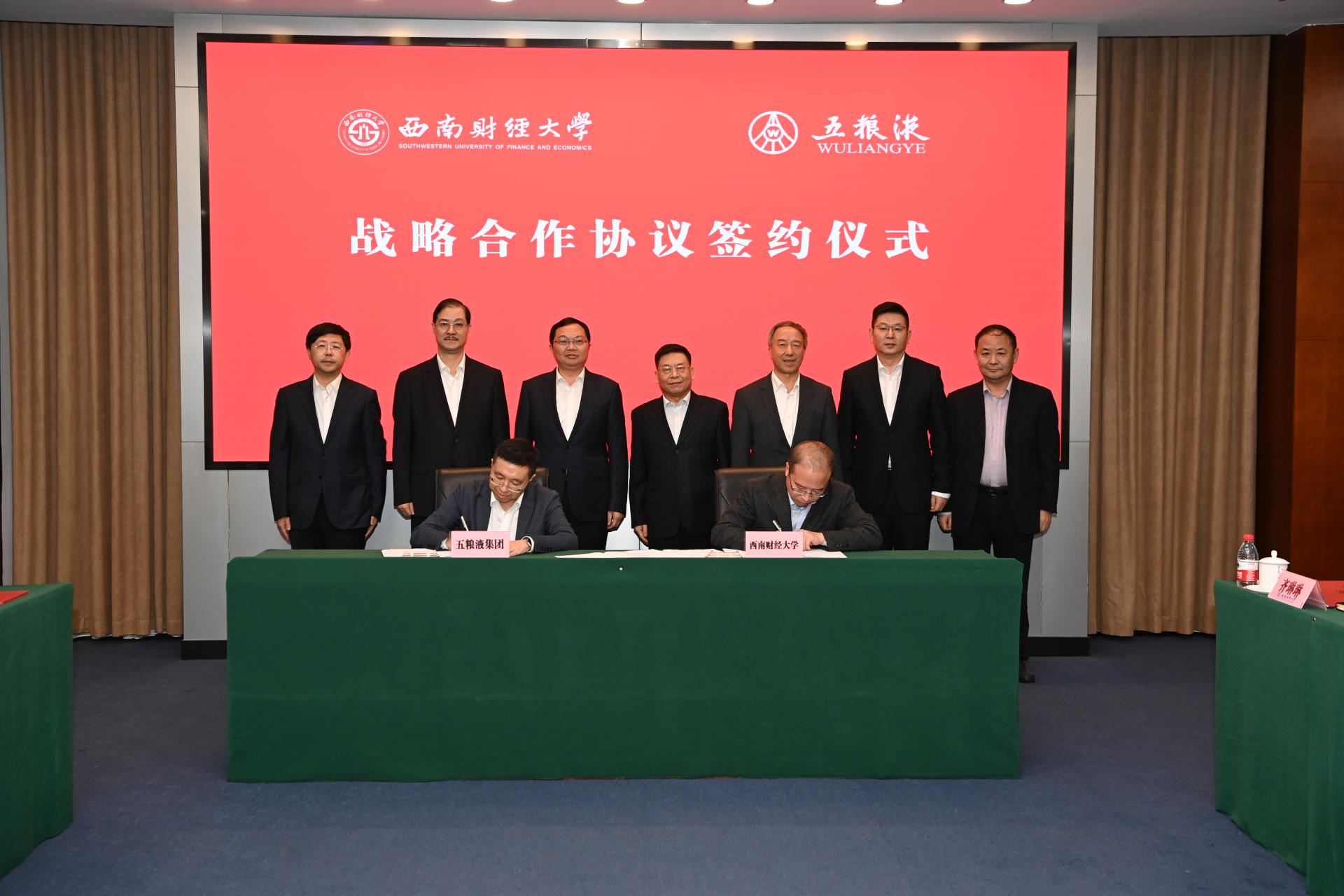 10月28日,我校與五糧液集團公司戰略合作協議簽約儀式在柳林校區舉行。五糧液集團(股份)公司黨委書記、董事長曾從欽,五糧液股份公司黨委副書記、副董事長、總經理蔣文格,五糧液股份公司副董事長張宇,五糧液集團(股份)公司總經濟師蔣佳,我校黨委書記趙德武,黨委副書記、校長卓志,黨委副書記、副校長李永強,黨委常委、副校長尹慶雙、張邦富以及相關職能部門及學院負責人出席簽約儀式。卓志主持儀式。