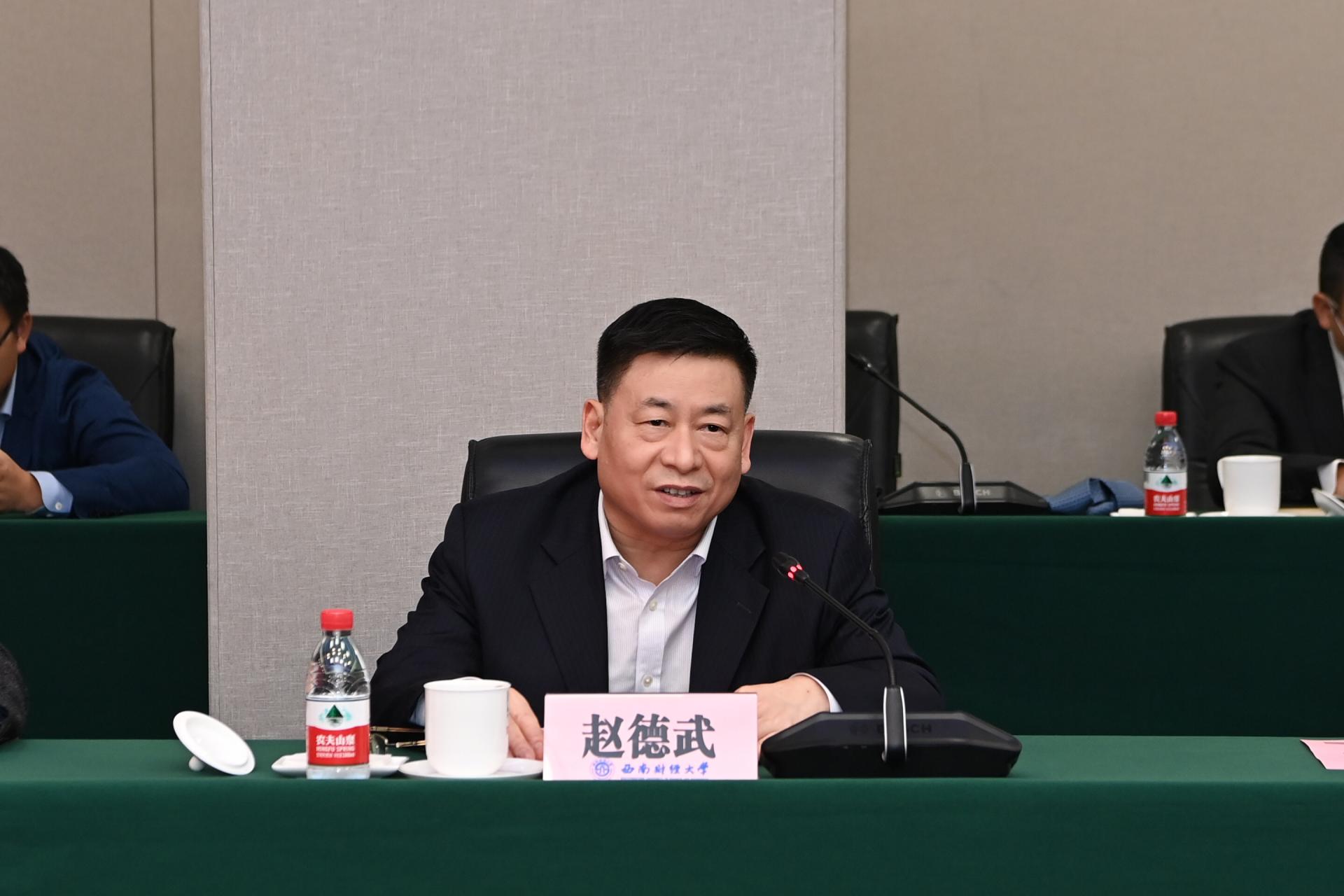 趙德武對五糧液集團公司曾從欽董事長一行表示熱烈歡迎,并對五糧液集團公司長期以來對學校的關心支持表示衷心感謝。他指出,此次戰略合作協議的簽訂,是雙方深入學習貫徹黨的二十大精神的具體實踐,是服務新時代治蜀興川再上新臺階、助力社會主義現代化四川建設的一致行動,也是落實“教育優先發展、科技自立自強、人才引領驅動”重要部署,推動產教融合的重要舉措,對于雙方更好服務國家戰略、爭創世界一流、推動高質量發展具有重大而深遠的意義。他提出三點合作建議,一是助推產業發展,共同助力建設現代化產業體系,二是服務國家戰略,共同助力治蜀興川再上新臺階,三是加強人才交流,共同助力雙方事業發展戰略。他表示,西南財經大學將認真履行戰略合作協議約定各項條款,推動雙方實現優勢互補、共同發展。