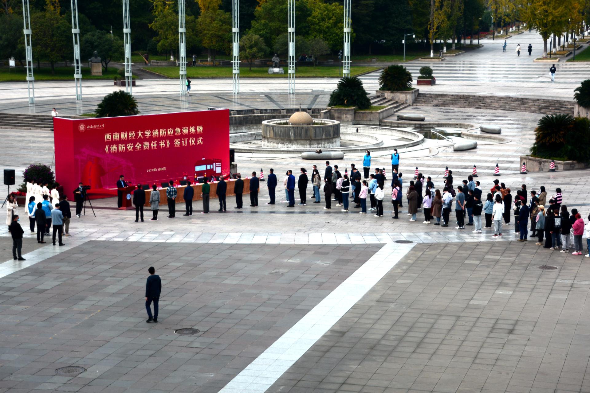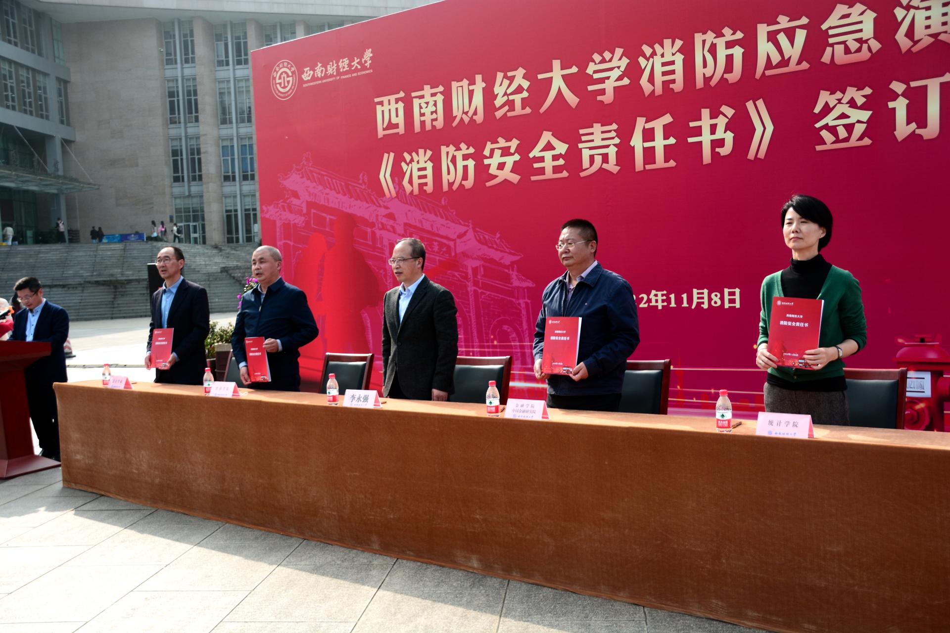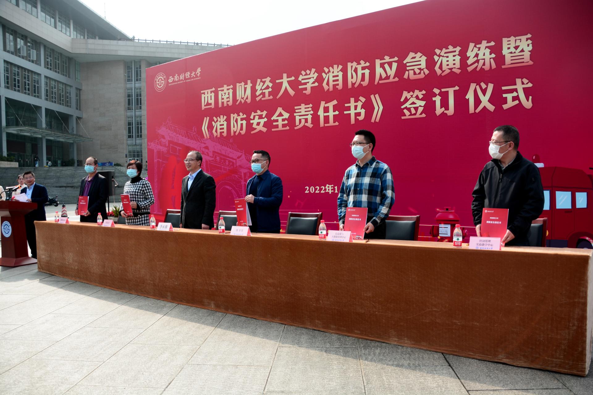 演習結束后,學校舉行《消防安全責任書》簽訂儀式,與金融學院、中國金融研究院、經濟學院、會計學院、統計學院、圖書館、檔案館、信息化與大數據管理中心、后勤服務總公司、經濟管理實驗教學中心共10個二級單位現場簽訂《消防安全責任書》。