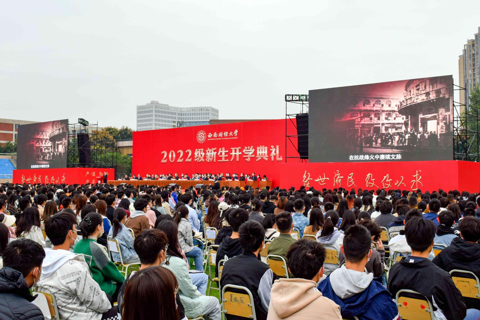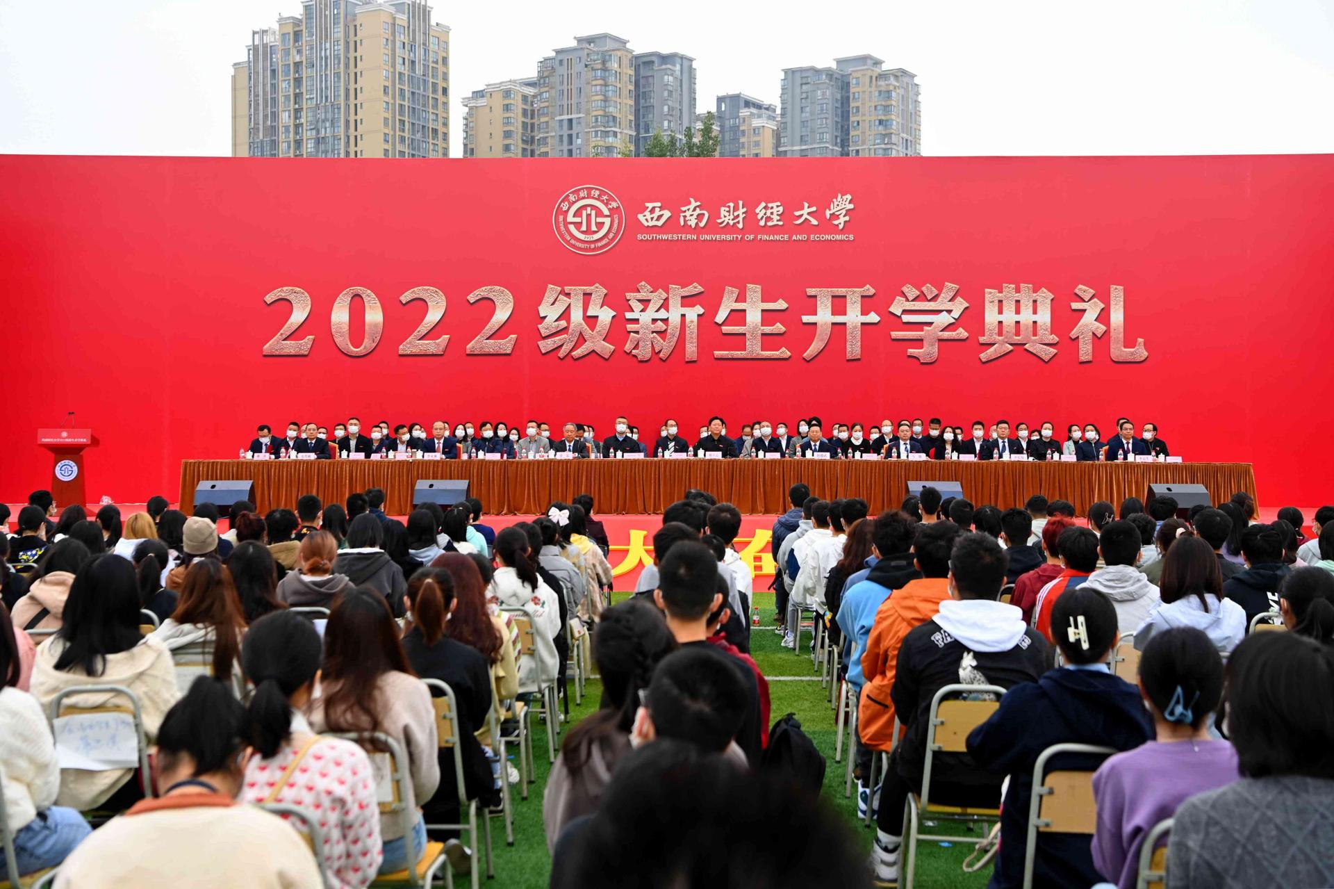 秋如期而至,你如約而來。10月11日,西南財經大學隆重舉行2022級新生開學典禮。來自五湖四海的本科生和研究生新生齊聚柳林校區晨曦運動場和光華校區第二運動場,參加莊嚴儀式、聆聽書記校長殷切囑托,同上一堂思政大課,厚植愛黨愛國愛校情懷,以磅礴青春力量開啟人生嶄新航程。四川省委教育工委副書記、省教育廳黨組成員劉立云,學校黨委書記趙德武,黨委副書記、校長卓志,黨委副書記馬驍,黨委副書記、副校長李永強,黨委常委、副校長尹慶雙、史代敏、張邦富、李志生,四川省教育廳宣傳思想與統戰工作處處長李大鵬出席典禮,與各學院(研究院)、職能(教輔)部門負責人、教師代表、校友代表以及2022級全體新生一道見證這一莊嚴神圣的時刻。