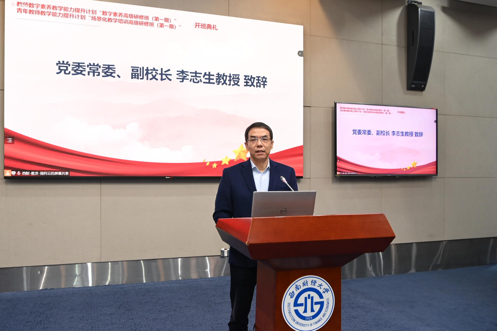10月12日上午,我校教師數(shù)字素養(yǎng)教學(xué)能力提升計(jì)劃“數(shù)字素養(yǎng)高級(jí)研修班(第一期)”與青年教師教學(xué)能力提升計(jì)劃“場(chǎng)景化教學(xué)高級(jí)研修班(第一期)”開班典禮在弘遠(yuǎn)樓101舉辦。學(xué)校黨委常委、副校長(zhǎng)李志生,北京師范大學(xué)教育學(xué)部董艷教授、學(xué)校教務(wù)處負(fù)責(zé)人和各學(xué)院(研究院)教學(xué)副院長(zhǎng)、系主任、青年教師等共計(jì)100余人參會(huì)。教師教學(xué)發(fā)展中心主任王遠(yuǎn)均主持會(huì)議。