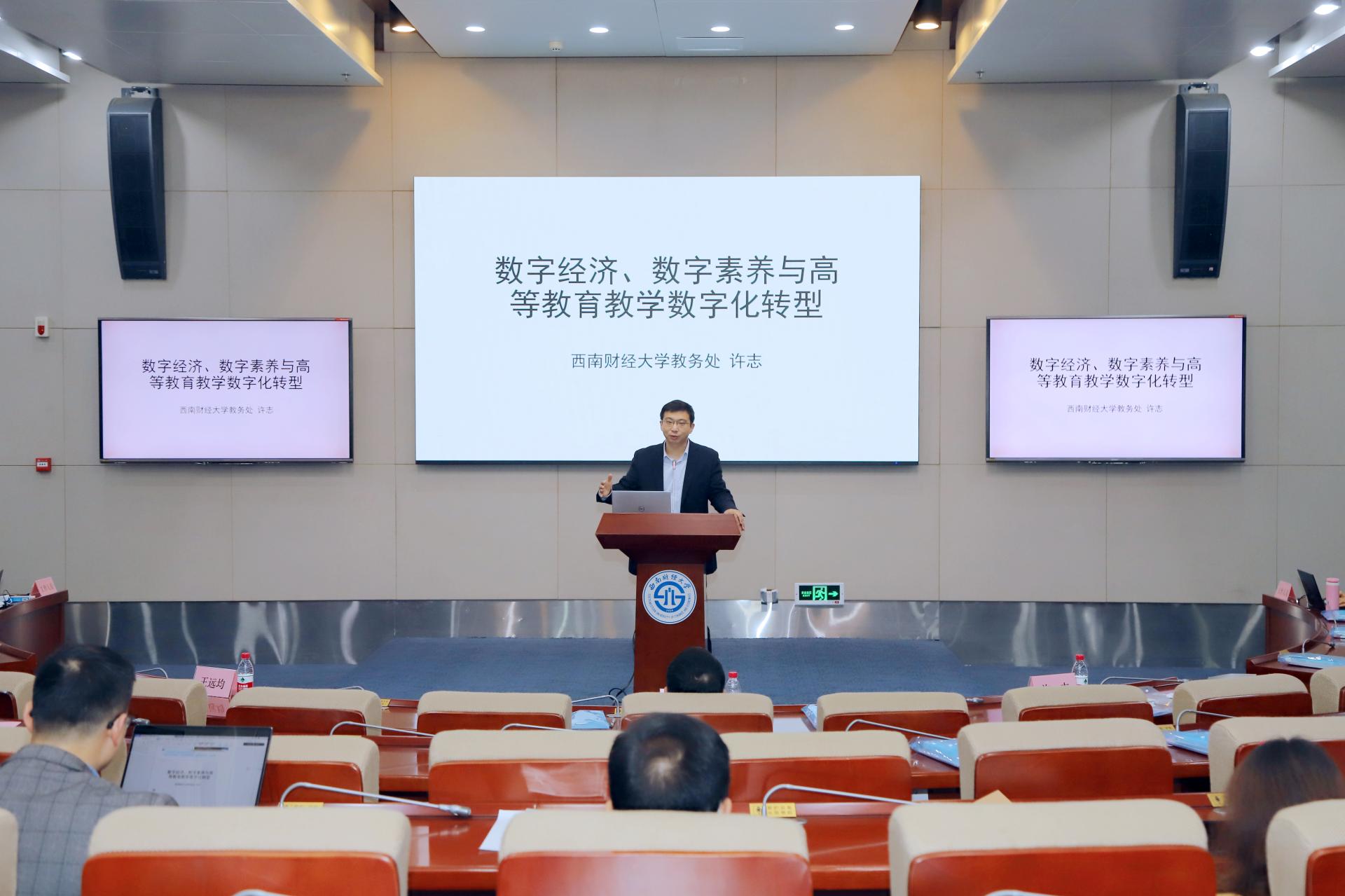 教務(wù)處副處長(zhǎng)許志作“數(shù)字經(jīng)濟(jì)、數(shù)字素養(yǎng)與高等教育數(shù)字化轉(zhuǎn)型”主題報(bào)告,從高等教育、院校、專業(yè)、課程教學(xué)、教師、學(xué)生及質(zhì)量保障7個(gè)層面進(jìn)行分享。