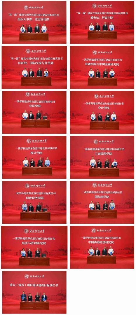 趙德武、卓志與第二輪“雙一流”建設五大專項的6個牽頭部門主要負責人、9個一流學科建設學院(研究院)黨政負責人以及16個重大項目負責人分別簽訂建設目標責任書。