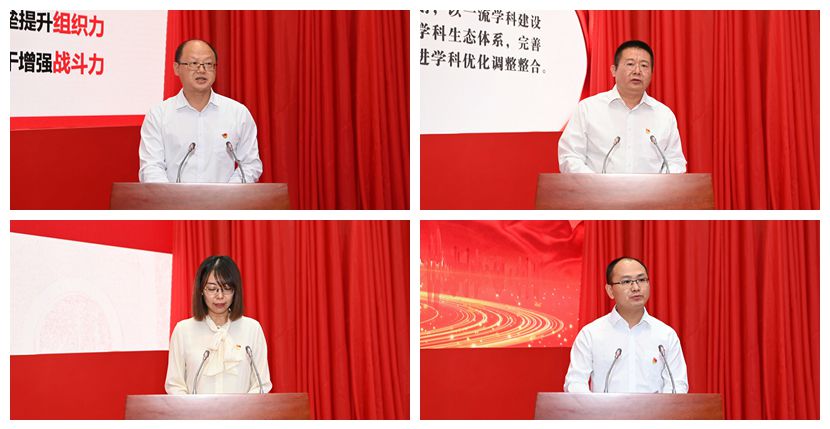 受表彰的基層黨組織代表楊奇才、先進個人代表謝志龍在發言中匯報了基層組織和自身工作的經驗和心得,表示將繼續做好榜樣示范,堅持勤勉不怠、踔厲奮發,為學校“雙一流”建設、為培養德智體美勞全面發展的社會主義建設者和接班人貢獻力量。新黨員代表張明同學發言表示未來將積極投身到中華民族偉大復興的宏偉實踐中,以不懈的拼搏奮斗升華人生夢想,以真才實學服務人民、貢獻國家。