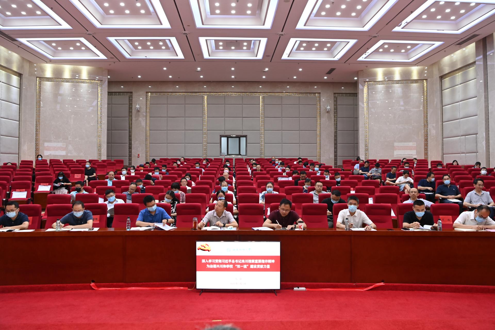 7月5日,學校召開統一戰線深入學習貫徹習近平總書記來川視察重要指示精神和四川省第十二次黨代會精神專題宣講報告會。學校黨委副書記馬驍作主題宣講,學校在職民主黨派成員、無黨派人士等120余人參加。會議由學校黨委統戰部常務副部長王石主持。