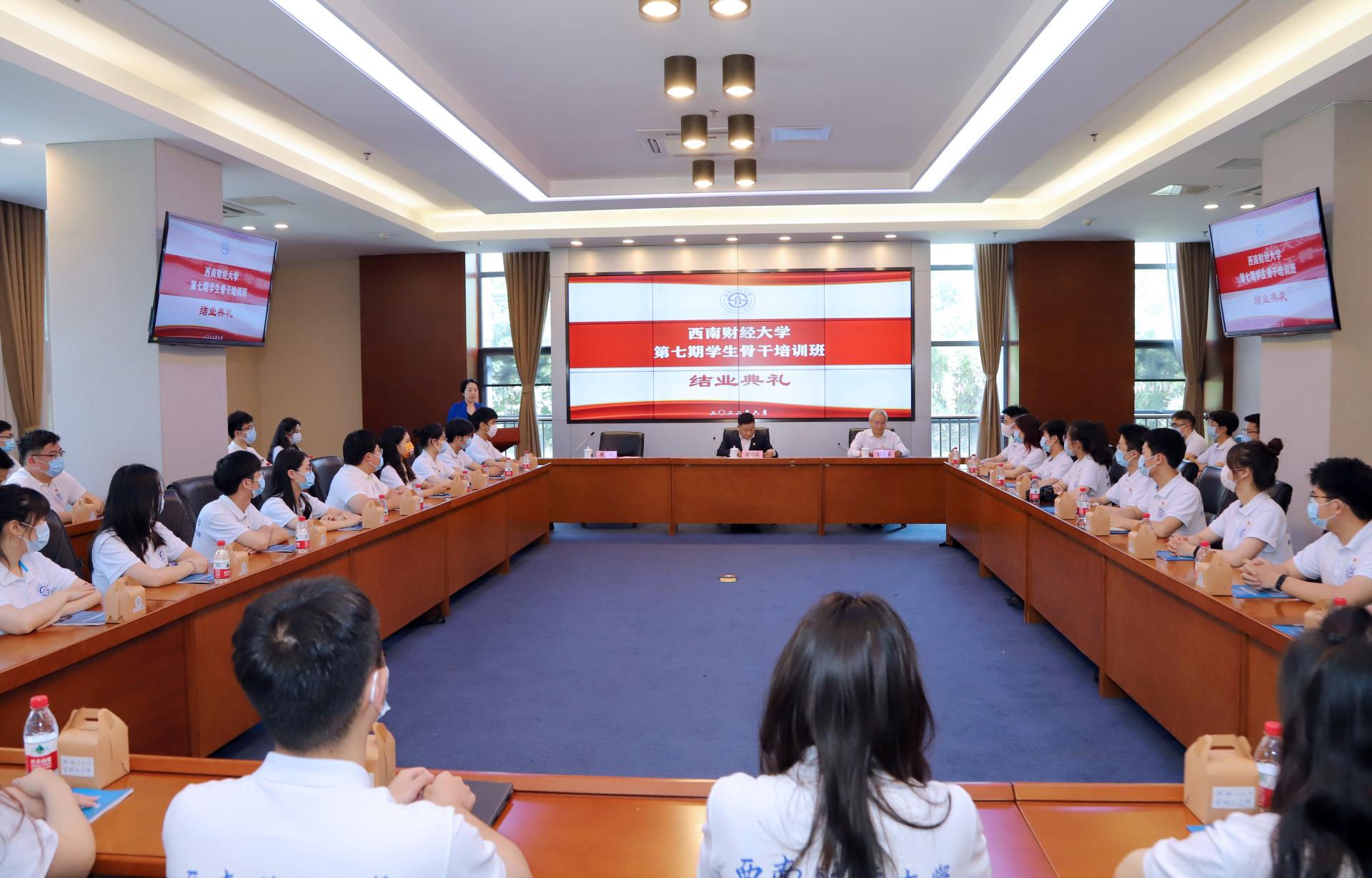 曾道榮作為學(xué)生骨干培訓(xùn)班班主任致辭。他全面總結(jié)了第七期培訓(xùn)班的培養(yǎng)情況,希望學(xué)員們堅(jiān)定理想信念,增強(qiáng)“志氣”,做“大氣為人”的踐行者;錘煉品德修為,增強(qiáng)“骨氣”,做“大智謀事”的開拓者;練就過硬本領(lǐng),增強(qiáng)“底氣”,做“大愛行天下”的奮斗者,在青春的賽道上跑出西財(cái)青年最好成績,以實(shí)際行動(dòng)迎接黨的二十大勝利召開。