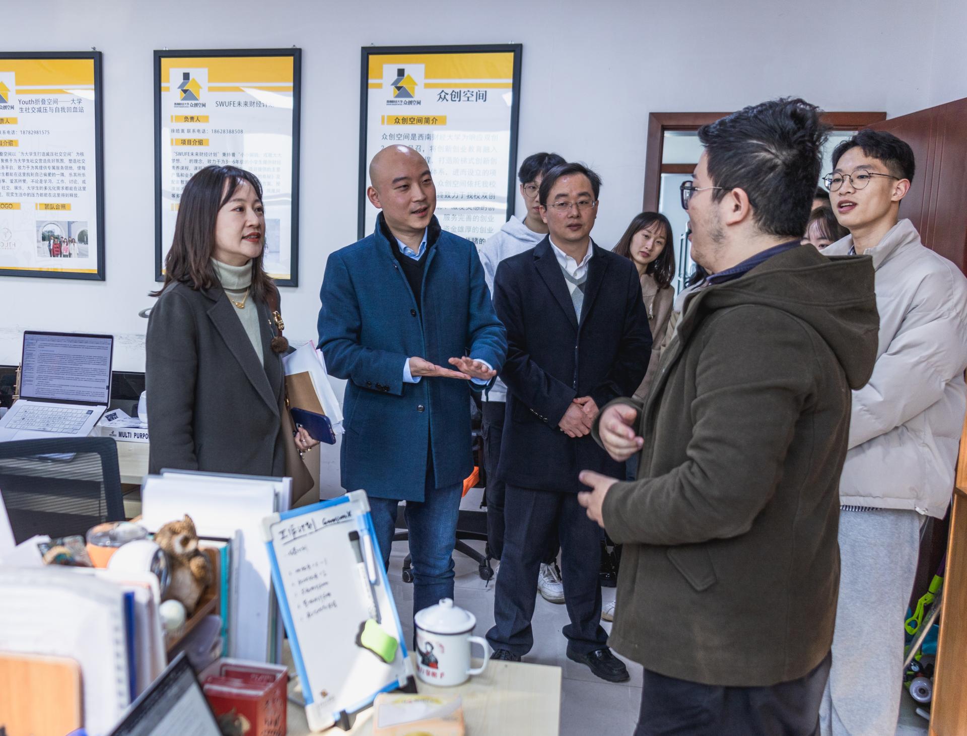調研期間,喬木一行結合就業統計調研工作到統計學院進行座談交流,并到創新創業中心實地參觀考察。