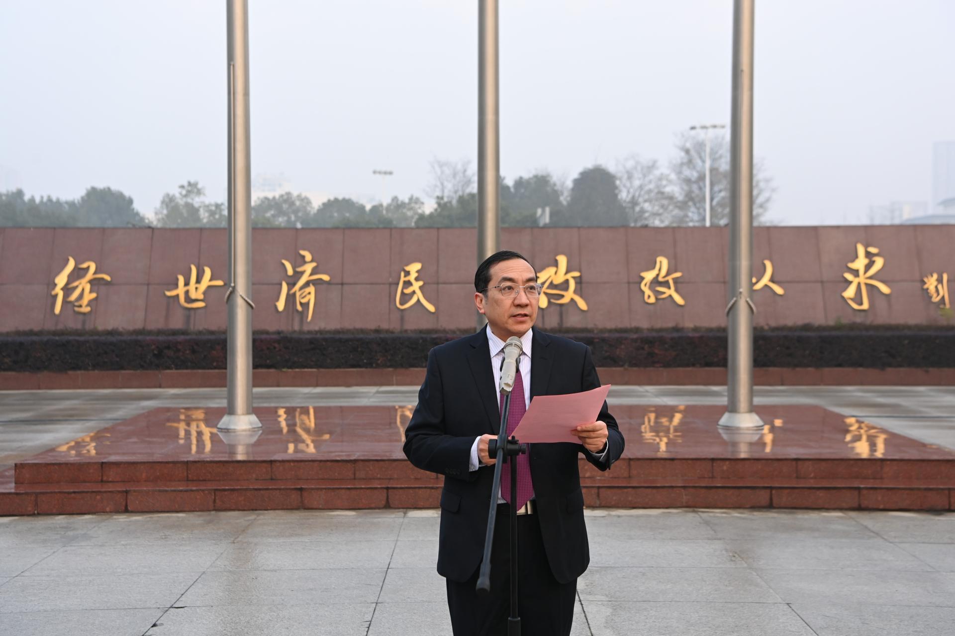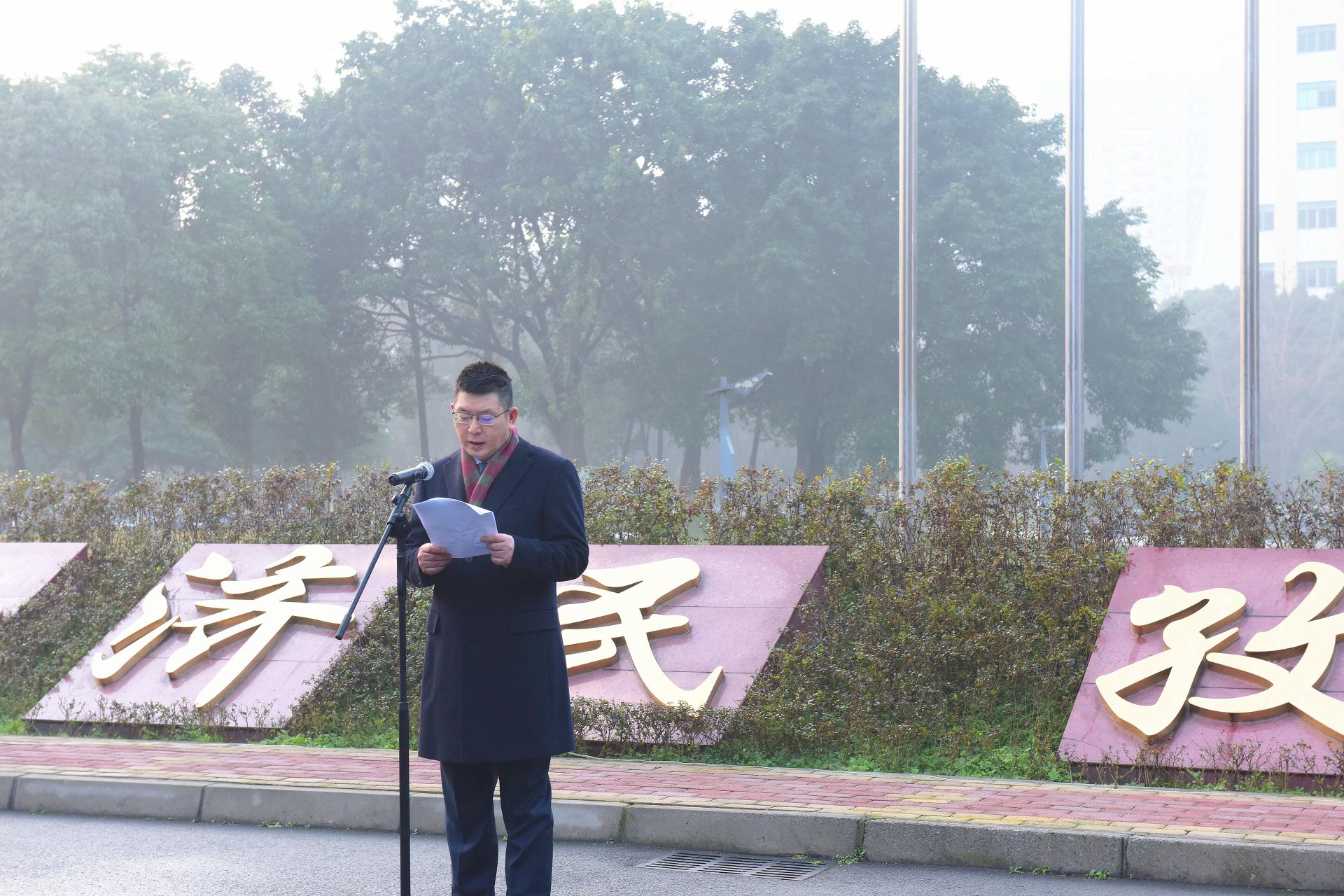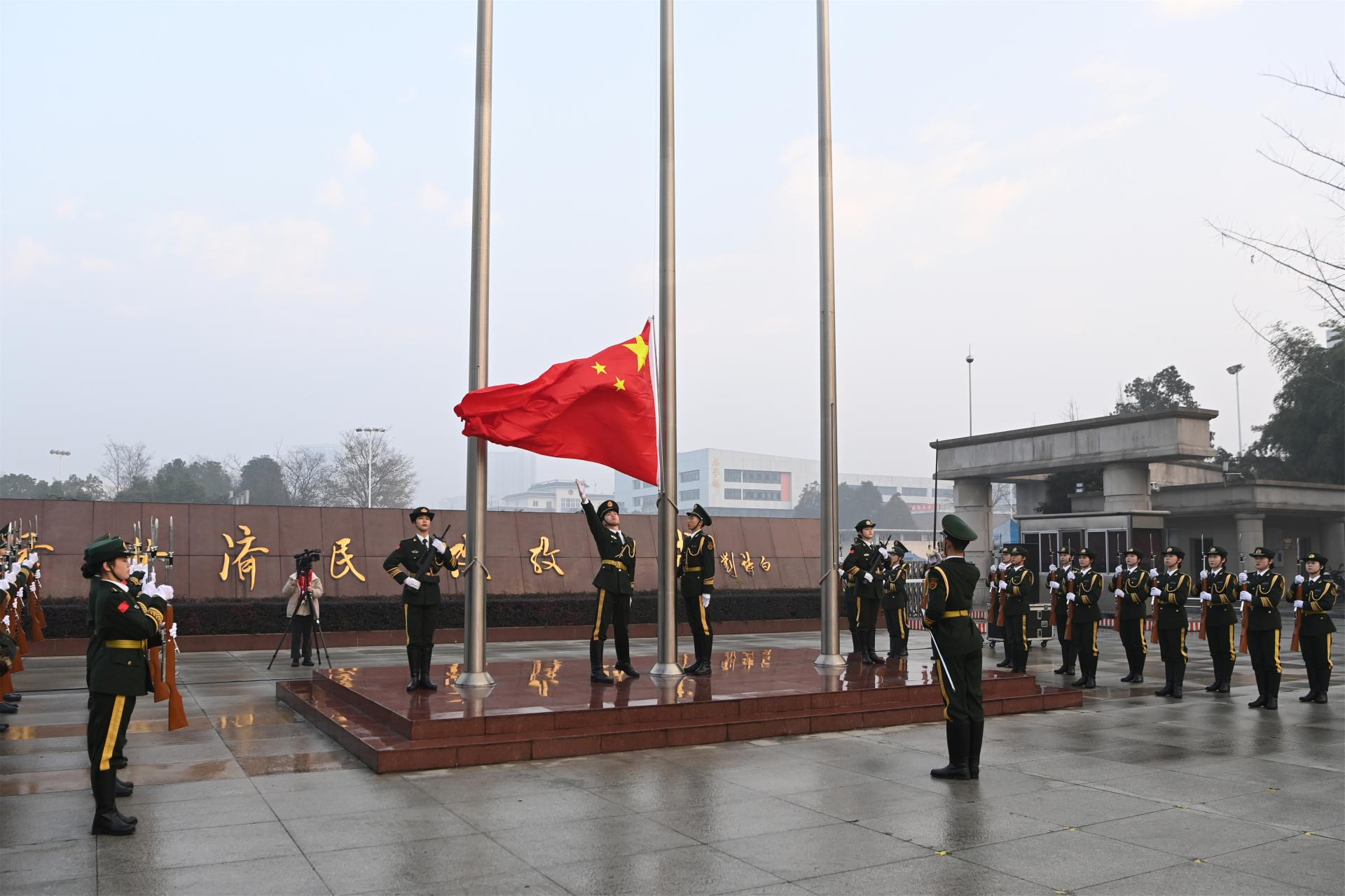 律回春暉漸,萬象始更新。2022年1月1日清晨,西南財經(jīng)大學元旦升國旗儀式在柳林校區(qū)和光華校區(qū)舉行。迎著溫暖的朝陽,懷著對新年的美好希望,200余名西財師生齊聚升旗點,莊嚴而喜悅地慶祝新年到來。黨委常委、副校長尹慶雙,證券與期貨學院、中國西部經(jīng)濟研究中心、繼續(xù)(網(wǎng)絡)教育學院師生代表,校衛(wèi)隊員等在光華校區(qū)參加升國旗儀式;黨委常委、副校長史代敏,經(jīng)貿(mào)外語學院、公共管理學院師生代表,校衛(wèi)隊員及國旗班成員等在柳林校區(qū)參加升國旗儀式。相關職能部門負責人主持升國旗儀式。