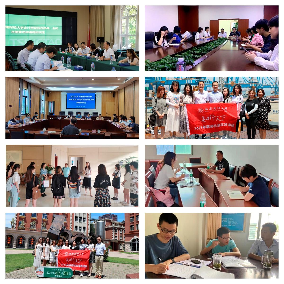 項目團隊教師充分發揮自身學科、專業優勢,堅持學用結合、用以促學、學用相長,在服務基層中學思踐悟,提高解決實際問題的能力。中國西部經濟研究中心“四川省生態產品價值轉化機制調查研究”項目團隊前往川西北生態示范區等開展生態產品價值轉化調研,并與成都市發改委、甘孜州瀘定縣生態環境局、蒲江縣明月村、溫江區幸福村相關負責人進行交流座談,研究省內生態產品價值轉化的典型案例,為協同推進區域內經濟發展和生態保護提供決策參考。法學院“疫情防控常態化背景下的地攤經濟新形態”項目調研團隊通過實地走訪、發放問卷等形式聚焦地攤經濟發展的現實狀況,從法學視角下開展地攤經濟的規范與管理研究。國際商學院“RCEP對四川省外貿企業帶來機遇與挑戰調研”項目團隊選擇成都武侯區鞋業、金牛區小商品市場、自貢彩燈行業等特色涉外行業,就其貿易現狀、營商環境、業務重點和經營難點展開座談調研。會計學院“基于虛擬仿真平臺打造的大學生就業培訓模式探索調研”項目團隊對貴州銀行總行、海信集團、青島啤酒集團、青島港集團、成都智云鴻道信息技術有限公司、珠峰財產保險股份有限公司等進行調研,進一步把握行業企業創新發展對高端財經人才的新需求。國際商學院“四川茶葉出口現狀及貿易發展研究”項目調研團隊前往成都國際商貿城及部分川茶企業展開參觀調研,基于調研問題幫助企業破解外銷難題,助推我省對外貿易高質量發展。