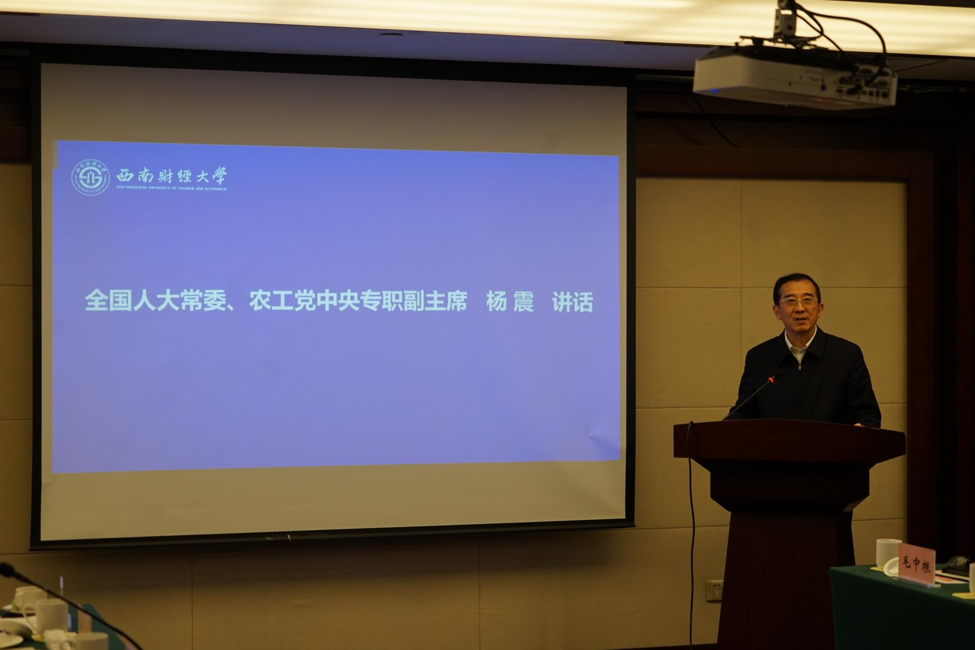 10月27日,由我校與中國農工民主黨中央委員會研究室、經濟金融專委會聯合主辦,學校科研處、黨委統戰部、中國西部經濟研究中心和北京研究院共同承辦的推進共同富裕專家研討會在北京貴州大廈召開。會議采取線上線下相結合的方式舉行。全國人大常委會委員、農工黨中央專職副主席楊震,農工黨中央研究室主任郭洪泉等相關部門負責人,以及來自中央黨校(國家行政學院)、國務院發展研究中心、中國社會科學院、北京大學、清華大學、南京大學等單位的專家學者和媒體代表應邀參加會議,我校黨委常委、常務副校長彭龍出席并代表學校致辭。