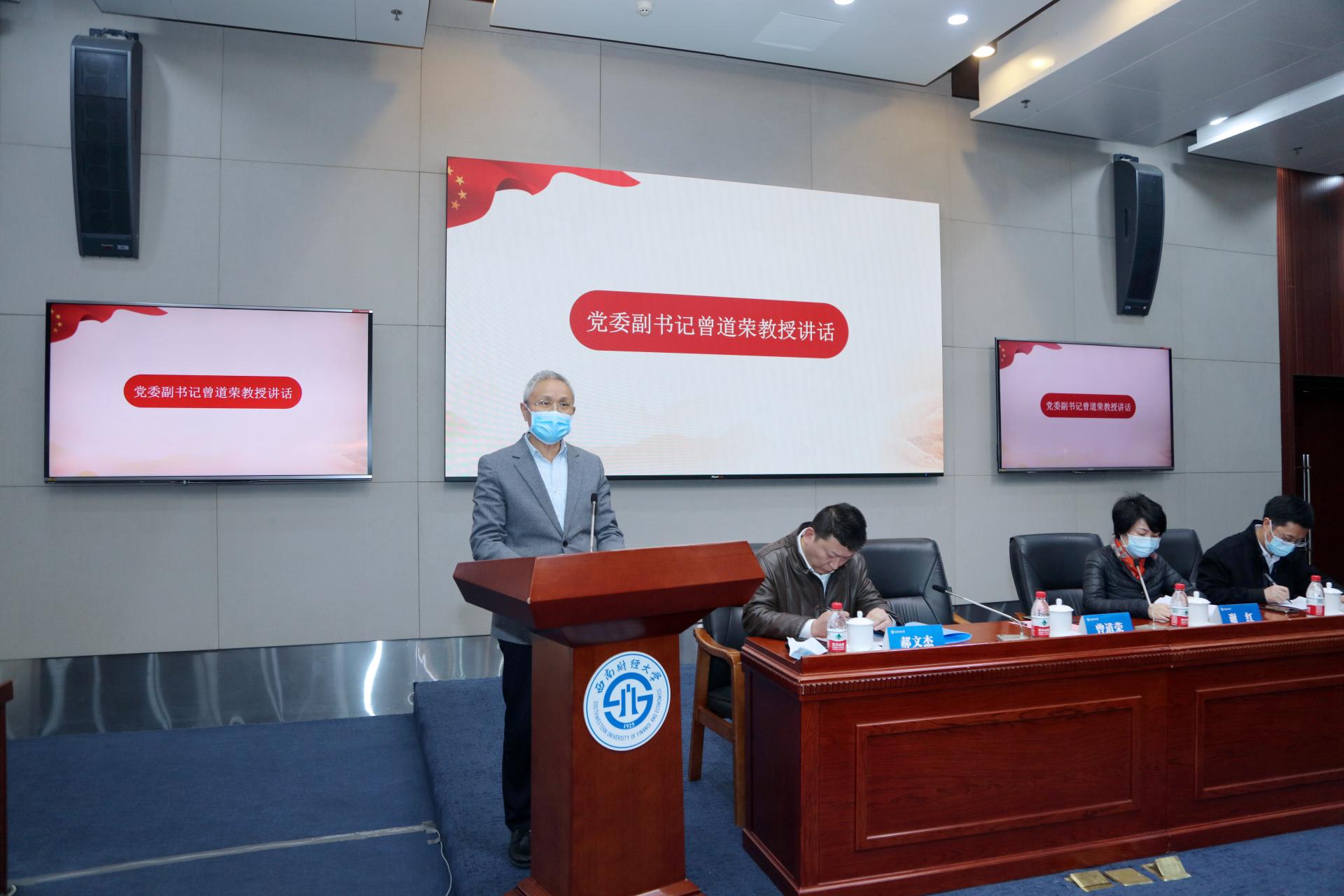 曾道榮代表學(xué)校向國旗班的同學(xué)致以誠摯的慰問,向受表彰的優(yōu)秀個人表示熱烈的祝賀。曾道榮強調(diào),國旗班是一個優(yōu)秀的集體,在學(xué)校愛國主義教育和國防教育中發(fā)揮了示范作用。曾道榮對國旗班同學(xué)提出三點期望。一是堅定理想信念,投身國家發(fā)展洪流,號召同學(xué)們從百年黨史中汲取信仰、堅定信念、積蓄力量,樹立為祖國為人民永久奮斗、赤誠奉獻(xiàn)的堅定理想信念;二是謹(jǐn)記青年大任,砥礪艱苦奮斗精神,讓奮斗成為青春的主色調(diào),扛起責(zé)任擔(dān)當(dāng),接好歷史接力棒;三是強健青春體魄,練就過硬奉獻(xiàn)本領(lǐng),增強體質(zhì),健全人格,刻苦學(xué)習(xí),敢于擔(dān)當(dāng),把青春年華鐫刻在奮斗的歲月里,以奮斗姿態(tài)展現(xiàn)青春擔(dān)當(dāng)。