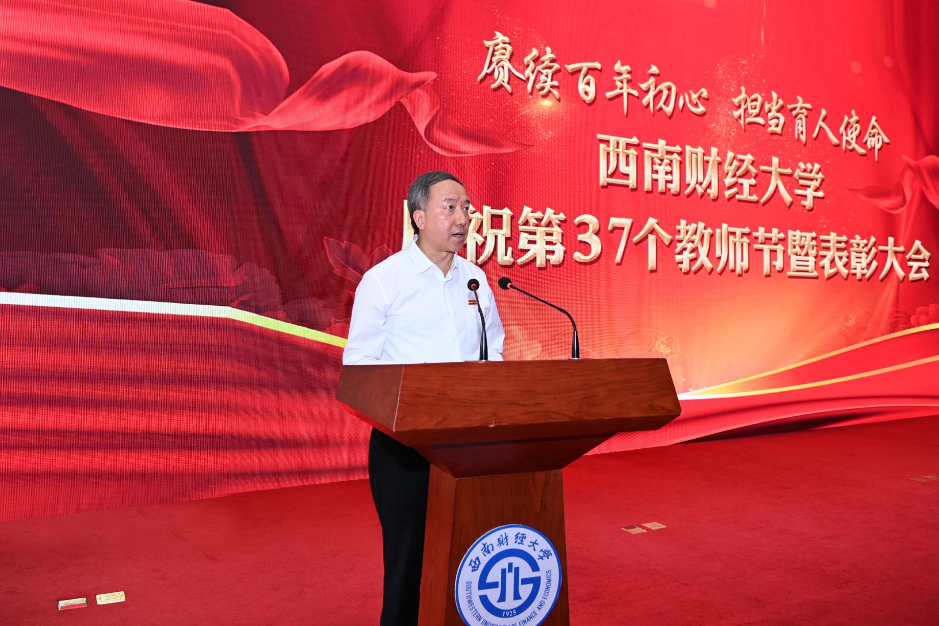 趙德武圍繞學(xué)習(xí)貫徹習(xí)近平總書(shū)記在清華大學(xué)考察時(shí)的重要講話精神強(qiáng)調(diào),要實(shí)現(xiàn)宏偉藍(lán)圖、建設(shè)世界一流,關(guān)鍵是要培養(yǎng)一支高素質(zhì)教師隊(duì)伍,關(guān)鍵是要有一批“大先生”,他們胸懷“國(guó)之大者”,以大道引領(lǐng)傳道、以大業(yè)引領(lǐng)授業(yè)、以大愛(ài)引領(lǐng)解惑。趙德武對(duì)全體教師提出希望和要求。一要賡續(xù)百年初心,自覺(jué)做習(xí)近平新時(shí)代中國(guó)特色社會(huì)主義思想的堅(jiān)定信仰者和忠實(shí)實(shí)踐者。自覺(jué)用習(xí)近平新時(shí)代中國(guó)特色社會(huì)主義思想武裝頭腦,繼承革命傳統(tǒng),賡續(xù)紅色血脈,將所學(xué)所研、所悟所得融入立德樹(shù)人的全過(guò)程。二要擔(dān)當(dāng)育人使命,努力培養(yǎng)擔(dān)當(dāng)民族復(fù)興大任的時(shí)代新人。認(rèn)真上好每一堂課,善于運(yùn)用“大思政課”,教育引導(dǎo)學(xué)生做到“六個(gè)下功夫”,把愛(ài)國(guó)情、強(qiáng)國(guó)志、報(bào)國(guó)行自覺(jué)融入建設(shè)社會(huì)主義現(xiàn)代化強(qiáng)國(guó)、實(shí)現(xiàn)中華民族的偉大復(fù)興之中。三要心懷“國(guó)之大者”,全面提升服務(wù)區(qū)域發(fā)展和國(guó)家重大戰(zhàn)略的能力。把學(xué)校的學(xué)科建設(shè)、科學(xué)研究、學(xué)術(shù)成果同黨和國(guó)家需要緊密聯(lián)系結(jié)合起來(lái),以創(chuàng)新驅(qū)動(dòng)高質(zhì)量發(fā)展,全力助力科技自立自強(qiáng),主動(dòng)服務(wù)新時(shí)代西部大開(kāi)發(fā)、成渝地區(qū)雙城經(jīng)濟(jì)圈建設(shè)、西部金融中心建設(shè)等國(guó)家戰(zhàn)略。四要自覺(jué)崇德修身,做以德立身、以德立學(xué)、以德施教的好老師。把“師德”作為第一標(biāo)準(zhǔn),明大德、守公德、嚴(yán)私德,自覺(jué)遵守新時(shí)代高等學(xué)校教師職業(yè)行為十項(xiàng)準(zhǔn)則,自覺(jué)用中華優(yōu)秀傳統(tǒng)文化、革命文化、社會(huì)主義先進(jìn)文化培根鑄魂、啟智潤(rùn)心,努力成為學(xué)生為學(xué)、為事、為人的“大先生”。趙德武強(qiáng)調(diào),學(xué)校各級(jí)黨組織要認(rèn)真落實(shí)《中國(guó)共產(chǎn)黨普通高等學(xué)校基層組織工作條例》要求,強(qiáng)化政治功能,履行政治責(zé)任,加強(qiáng)教師思想政治引領(lǐng),深入開(kāi)展師德專題教育各項(xiàng)工作,深入開(kāi)展“我為群眾辦實(shí)事”實(shí)踐活動(dòng),不斷增強(qiáng)廣大師生獲得感、幸福感、成就感。