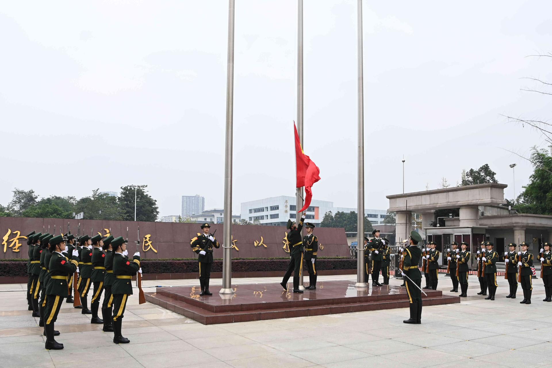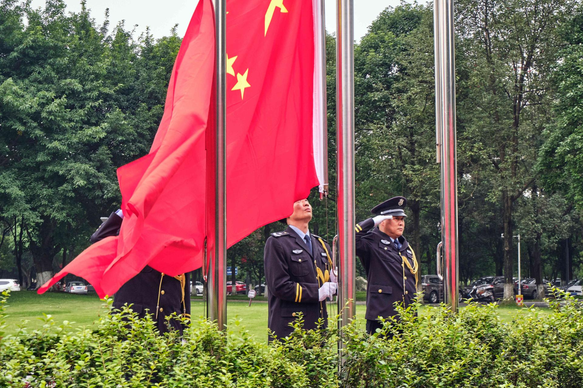 8時30分,國旗班成員邁著鏗鏘有力、整齊劃一的步伐,護送著國旗緩緩入場。伴隨著“升國旗、奏唱國歌”的號令,雄壯激昂的《義勇軍進行曲》響徹校園,鮮艷的五星紅旗在全體觀禮師生的深情注視中冉冉升起、高高飄揚。全體觀禮師生凝神肅立同唱國歌,共同祈愿偉大祖國繁榮昌盛,愛國心、民族情在這一刻被瞬間點燃,心中洋溢著對偉大祖國的無限熱愛和美好祝福。