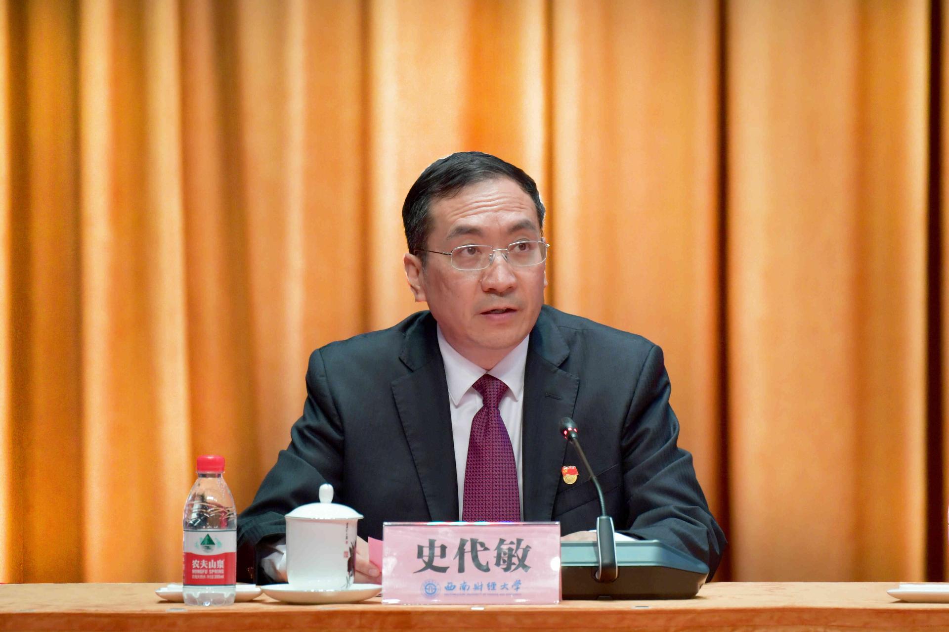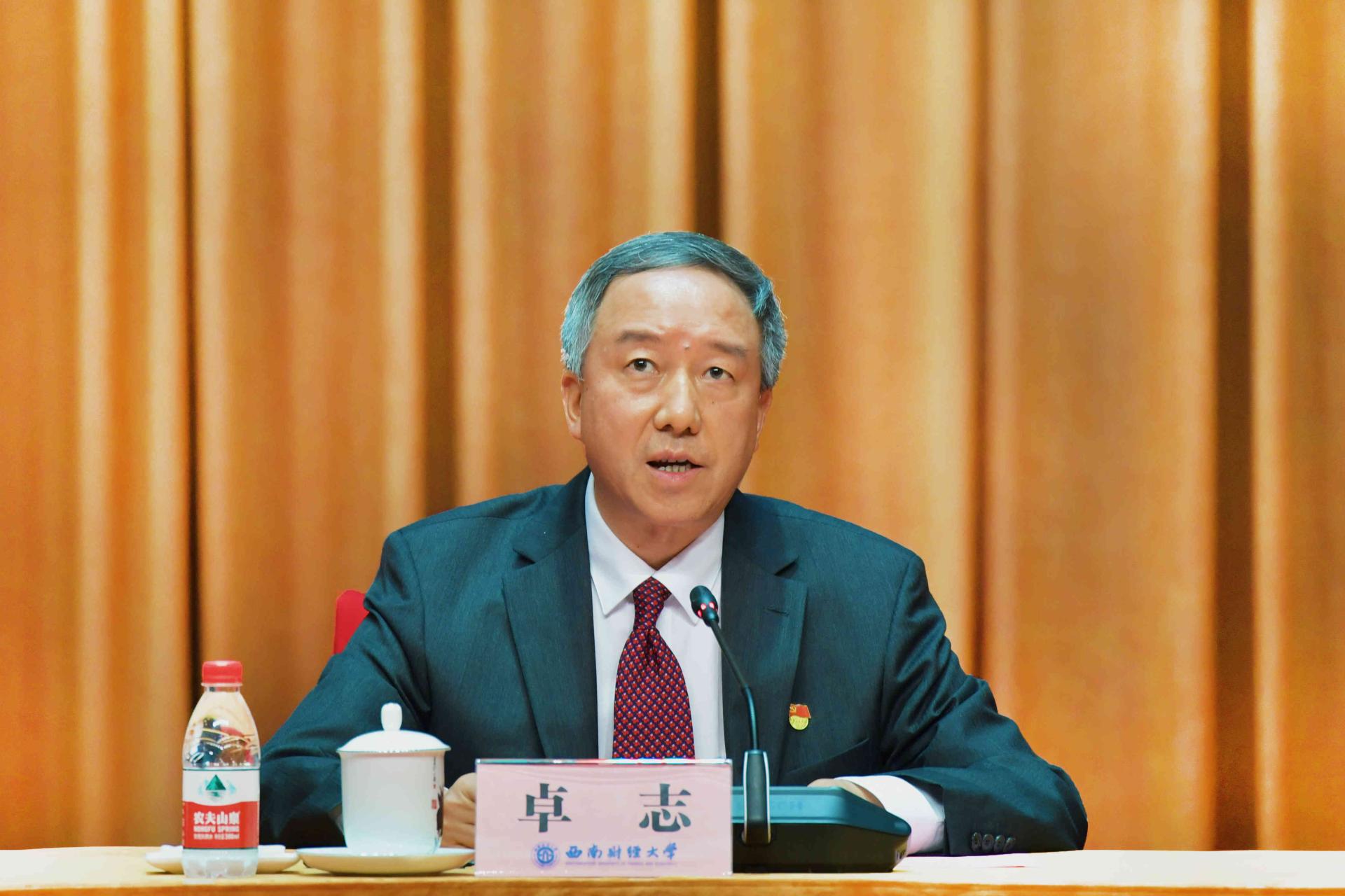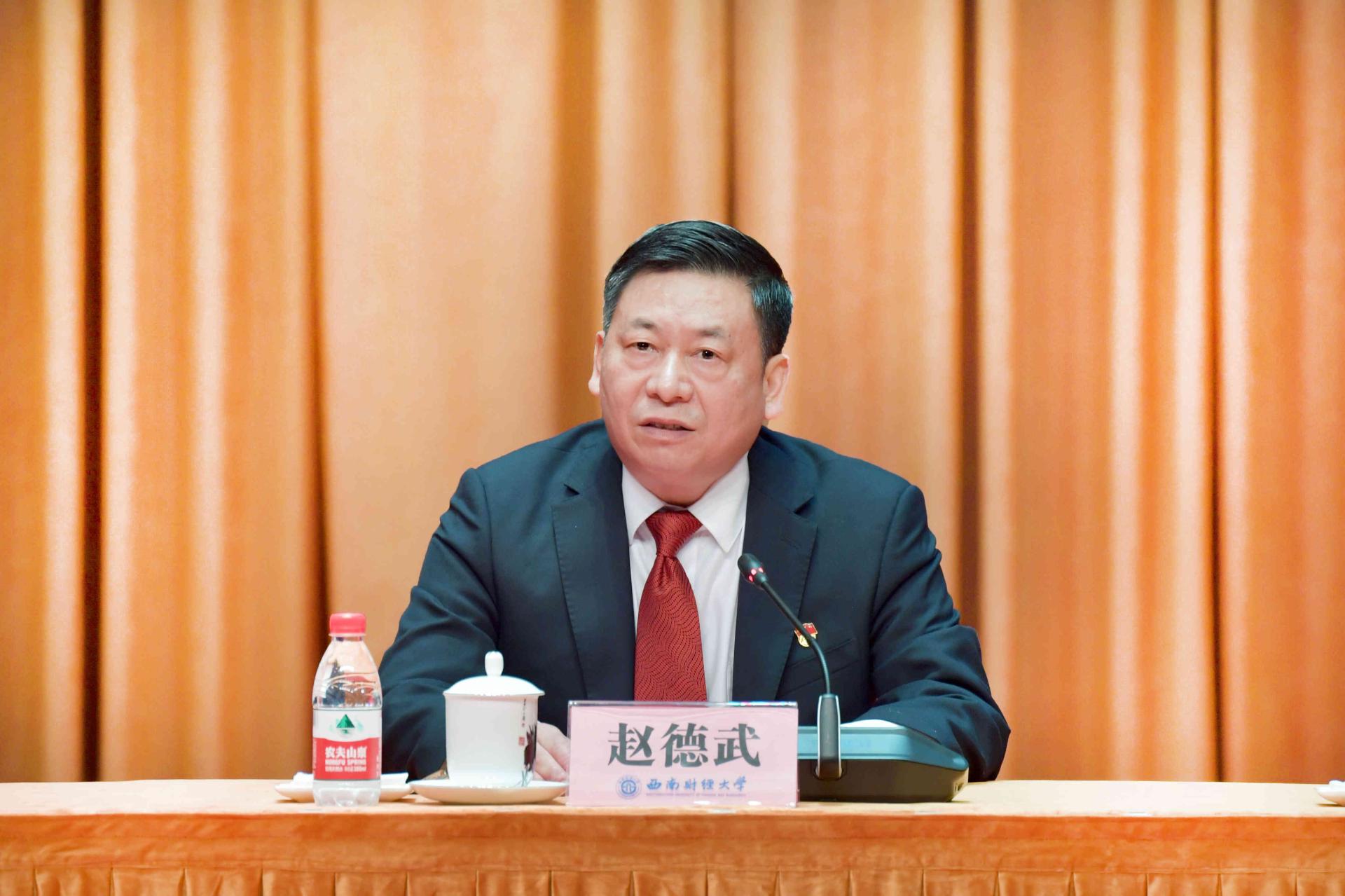 趙德武指出,百年黨史恢弘巨著,教育事業是光輝篇章,西南財大是精彩一頁。他回望了學校在黨的堅強領導下繪就的團結奮斗、搶抓機遇、創新發展、追求卓越壯麗畫卷。他指出,在新民主主義革命時期、社會主義革命和建設時期、改革開放和社會主義現代化建設新時期、中國特色社會主義新時代,學校堅定以黨旗引領航向,走過了一條教育報國、團結奮進、追求卓越之路;一代又一代信仰堅定、奮斗奉獻的西財共產黨人,奮力為黨旗增輝添彩,堅守立德樹人初心和為黨育人、為國育才使命,用熱血和生命書寫了璀璨厚重時代華章;我們矢志讓黨旗永遠高揚,形成了彌足珍貴的重要經驗,堅持黨的全面領導是根本保證、立德樹人是根本任務、服務國家是根本使命、改革創新是根本動力、師生員工是根本依靠,這是我們管黨治黨、辦學育人、繼續前進、開創未來的制勝法寶。