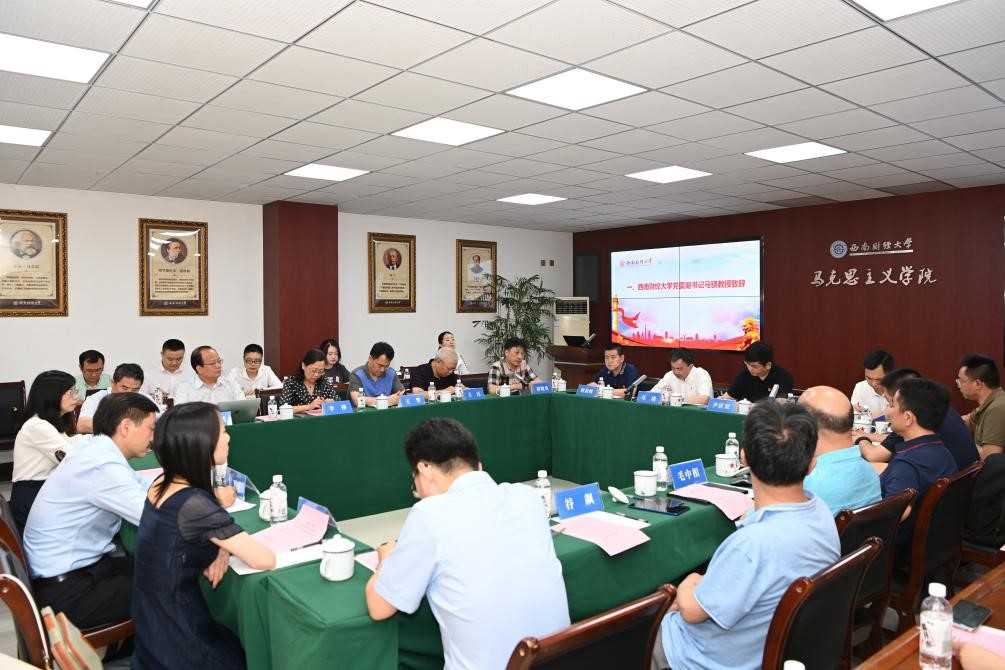 座談會上,經濟學院原院長李萍教授、馬克思主義學院全球化與馬克思主義研究中心主任韓源教授、中國金融研究中心主任王擎教授、中國西部經濟研究中心主任毛中根教授、公共管理學院院長廖宏斌教授、經濟學院副院長蓋凱程教授、社會發展研究院副院長鄧湘樹教授、人文學院經濟哲學學科帶頭人谷飆教授、馬克思主義學院中國近現代史問題研究所所長李春梅教授、西南民族大學《民族學刊》主編王玨、四川省社會科學院《社會科學研究》編輯陳果、馬克思主義學院院長唐曉勇等12位專家學者先后結合自身專業特色和工作實際,交流分享了學習體會。大家一致認為,習近平總書記的重要講話內涵豐富、思想深邃、催人奮進,是一篇貫通歷史、現在和未來,閃耀著馬克思主義光輝的綱領性文獻,必須全面系統學、深入持久學、聯系實際學,力爭學深悟透,融會貫通。