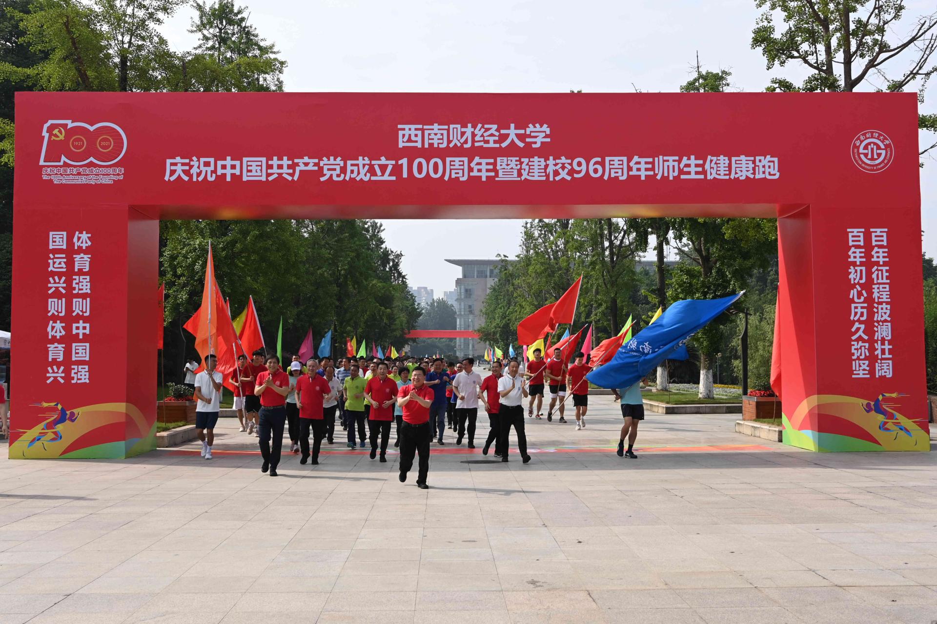 6月2日,西南財經大學在柳林校區舉行慶祝中國共產黨成立100周年暨建校96周年師生健康跑,以寓教于行、健康向上的體育運動進一步激發師生愛黨愛國愛校熱情,用赤誠飽滿、昂揚奮發的師生風貌向黨的百年華誕和建校紀念日獻禮。校領導趙德武、卓志、彭龍、曾道榮、范衛宏、史代敏、張邦富,中層干部、教職工和學生代表參加健康跑。