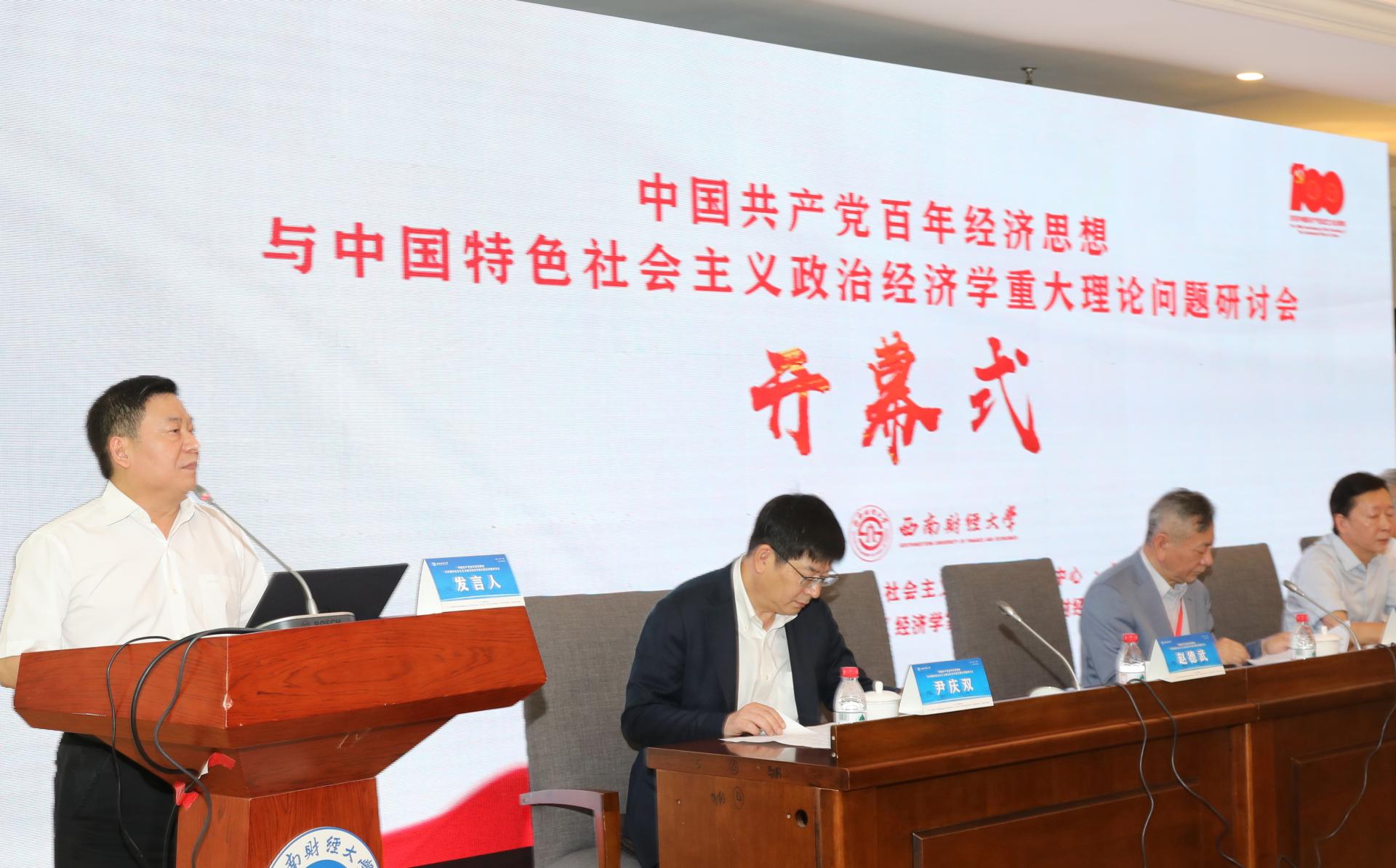 李澤敏在致辭中表示,中國共產黨是一個勇于、勤于、善于理論創新的政黨,在喜迎建黨100周年之際,系統總結中國共產黨百年經濟思想,探討中國特色社會主義政治經濟學重大理論問題,不僅有助于我們從黨史角度理解中國共產黨經濟理論產生和發展的脈絡,也有助于在新的歷史條件下進一步推動黨的經濟理論創新,更好地指導社會主義經濟建設實踐。他指出,在近百年的輝煌歷史中,西財在開拓政治經濟學新境界等方面做出了突出貢獻。他強調,要充分發揮高校哲學社會科學主力軍作用,推動中央和省委重大決策部署實施,實現文化強省和構建中國特色、四川特點的哲學社會科學目標,積極助力“十四五”開局起步,努力為推動治蜀興川再上新臺階、奪取全面建設社會主義現代化四川新勝利貢獻力量,以優異成績慶祝建黨100周年。