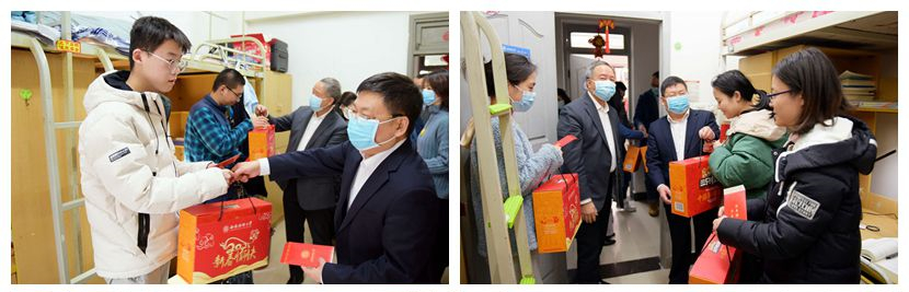 2月8日下午,值此新春佳節(jié)之際,黨委書(shū)記趙德武,校長(zhǎng)、黨委副書(shū)記卓志一行深入學(xué)生公寓,看望慰問(wèn)留校學(xué)生,送上精心訂制的春節(jié)大禮包,向同學(xué)們致以親切關(guān)懷和新春祝福,并向節(jié)假日期間堅(jiān)守崗位、辛勤付出的工作人員表示衷心的感謝和良好的祝愿。