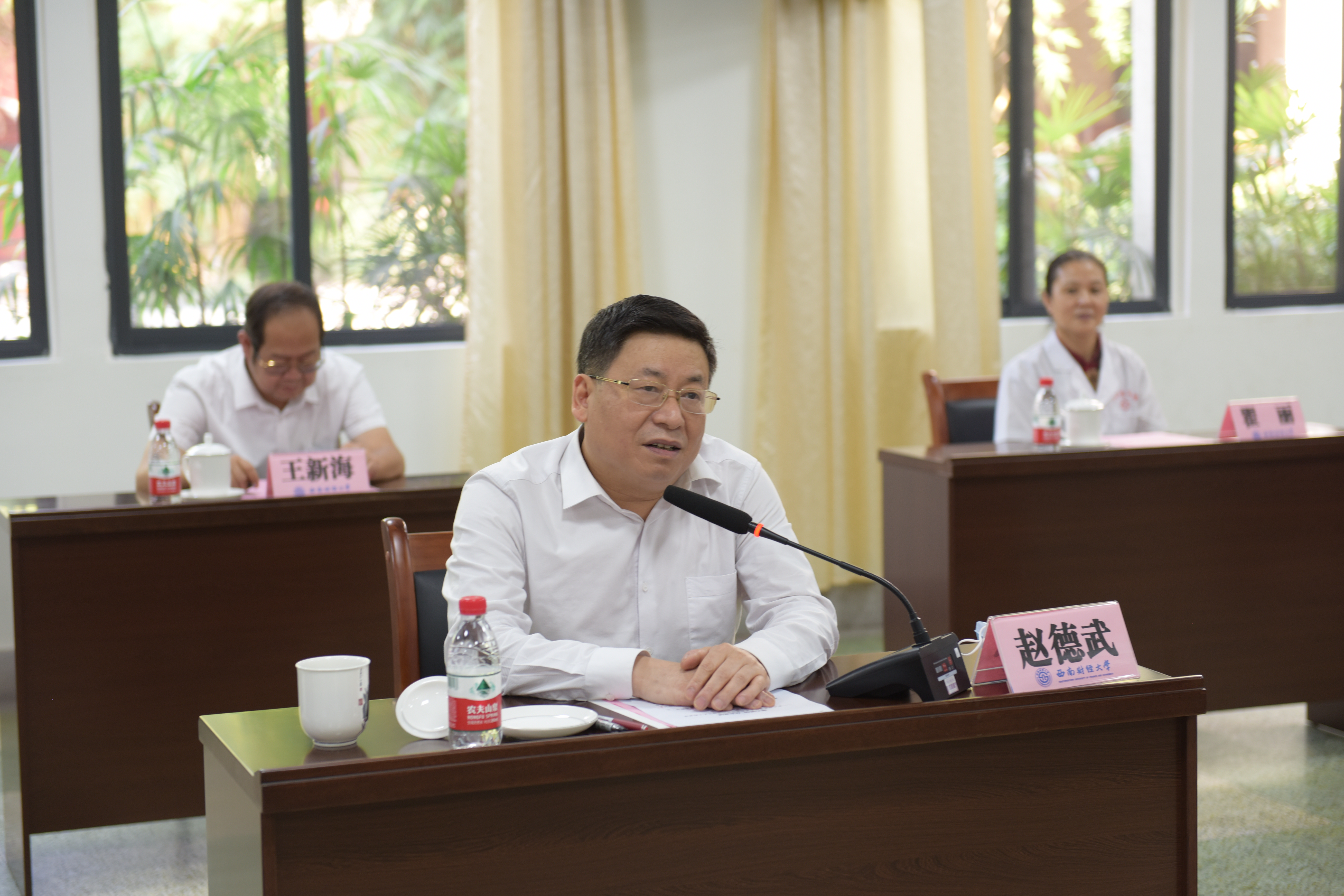 捐贈儀式上,趙德武致感謝辭。他介紹了新冠疫情發生以來學校全力打好校園防控阻擊戰的情況和學校95年建設發展概況,以及學校在新時代創建國際知名財經特色鮮明高水平研究型大學的歷史使命和戰略目標。他表示,在學校發展中,歷屆校友心系母校、支持母校,用實際行動踐行西財精神,為祖國發展作出重要貢獻,為母校爭得無限榮光。此次宏圖億東集團的捐贈充分體現了大愛精神和責任擔當,體現了校友的教育情懷和西財情結。希望以此為起點,大家常來常往,共同開啟更加美好的未來。