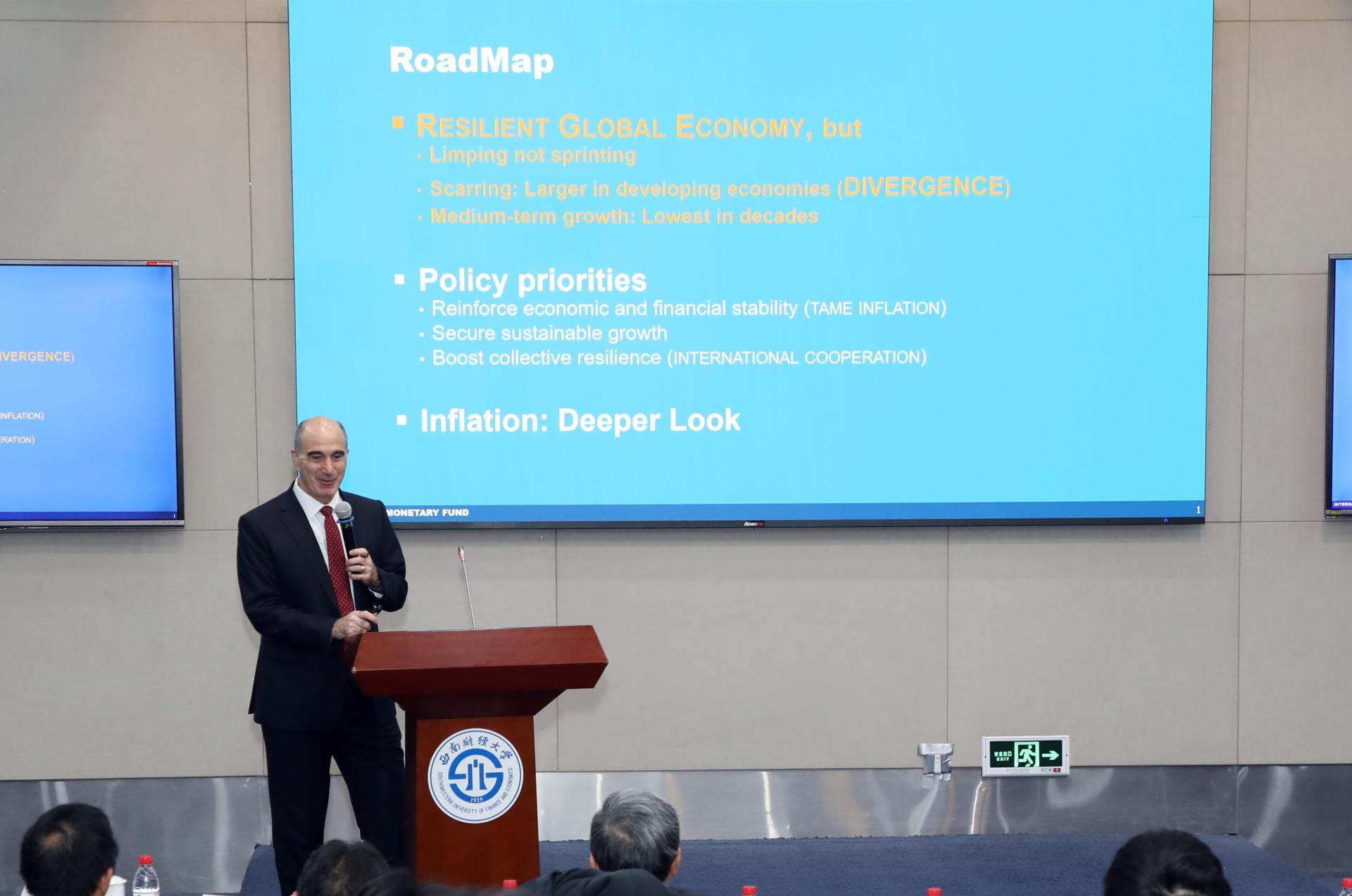 Steven Alan Barnett以“處理全球分歧”為主題作精彩演講。他表示,2023年世界經(jīng)濟充滿彈性,當前全球經(jīng)濟繼續(xù)處在復蘇中,但進程緩慢、不均衡。國際社會需要增強集體抵御能力,同時加強貨幣政策與財政政策的協(xié)調(diào)重組,重振國際合作精神,促進世界各個國家、地區(qū)展開合作,以應對和解決全球經(jīng)濟與金融挑戰(zhàn)。