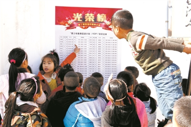 2018年6月,后池村棕樹小學(xué)貼出當(dāng)年的光榮榜,孩子們聞?dòng)嵎鋼矶鴣恚覍ぐ裆嫌袥]有自己的名字。光榮榜之下,調(diào)皮的小吉牛不論怎么踮起腳尖,始終都看不到光榮榜。情急之下,他爬上一旁的籃球架。小吉牛曾是同學(xué)們眼里的“壞”孩子,經(jīng)常逃課打架,但自從棕樹小學(xué)參加了獎(jiǎng)勵(lì)計(jì)劃,他按時(shí)上學(xué)、連續(xù)兩次獲得了“出勤獎(jiǎng)”,每次獲得150元獎(jiǎng)勵(lì)。如今,小吉牛的成績和行為習(xí)慣發(fā)生了很大變化。