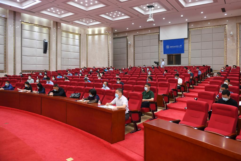 5月9日,學校在柳林校區召開中層干部會議,部署安排復學復課工作。黨委書記趙德武,校長、黨委副書記卓志,黨委常委、常務副校長彭龍,黨委副書記馬驍,黨委副書記曾道榮,黨委副書記、紀委書記范衛宏,黨委常委、副校長歐兵、尹慶雙、史代敏、張邦富、李永強,全體中層正職、學院(中心)副書記參加會議。趙德武主持會議并講話。