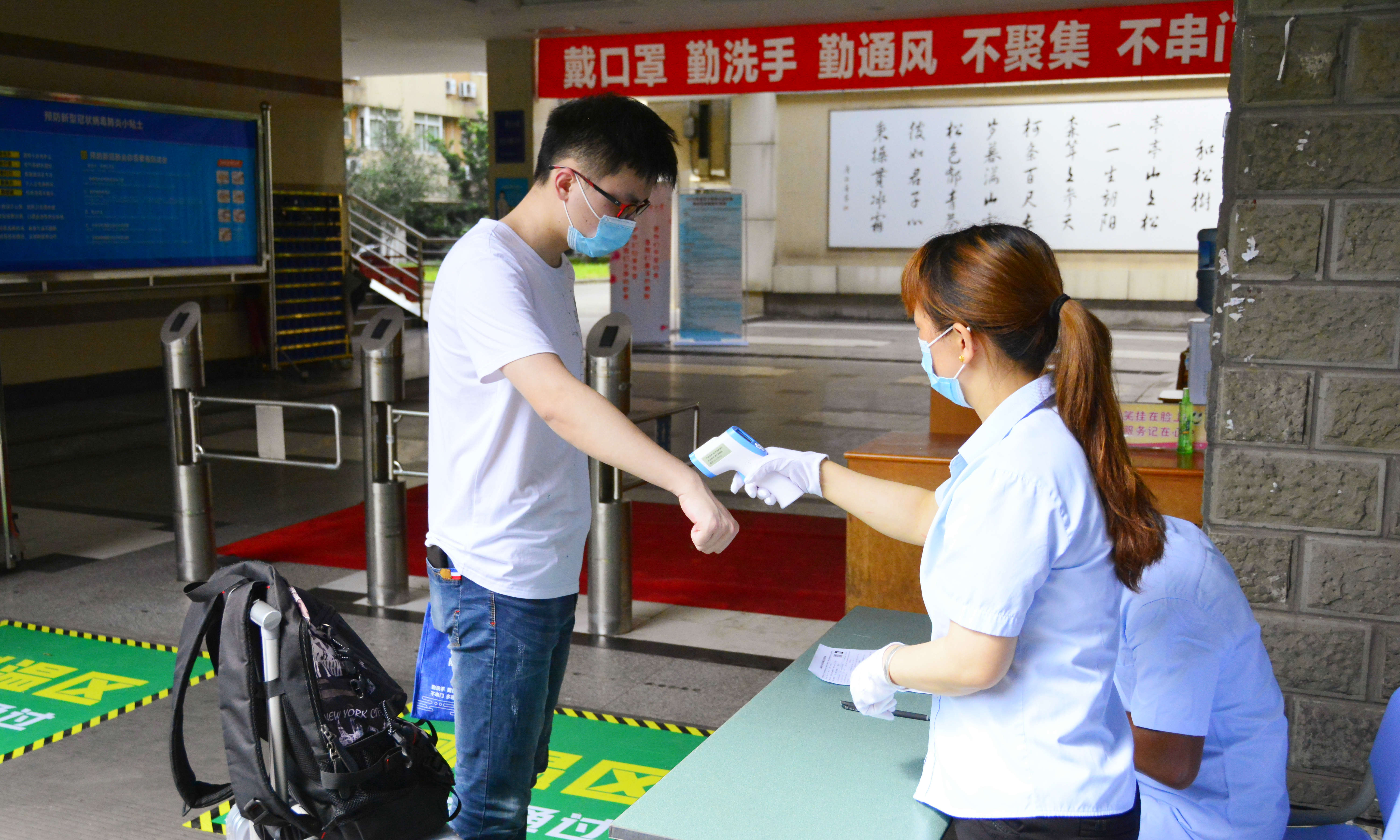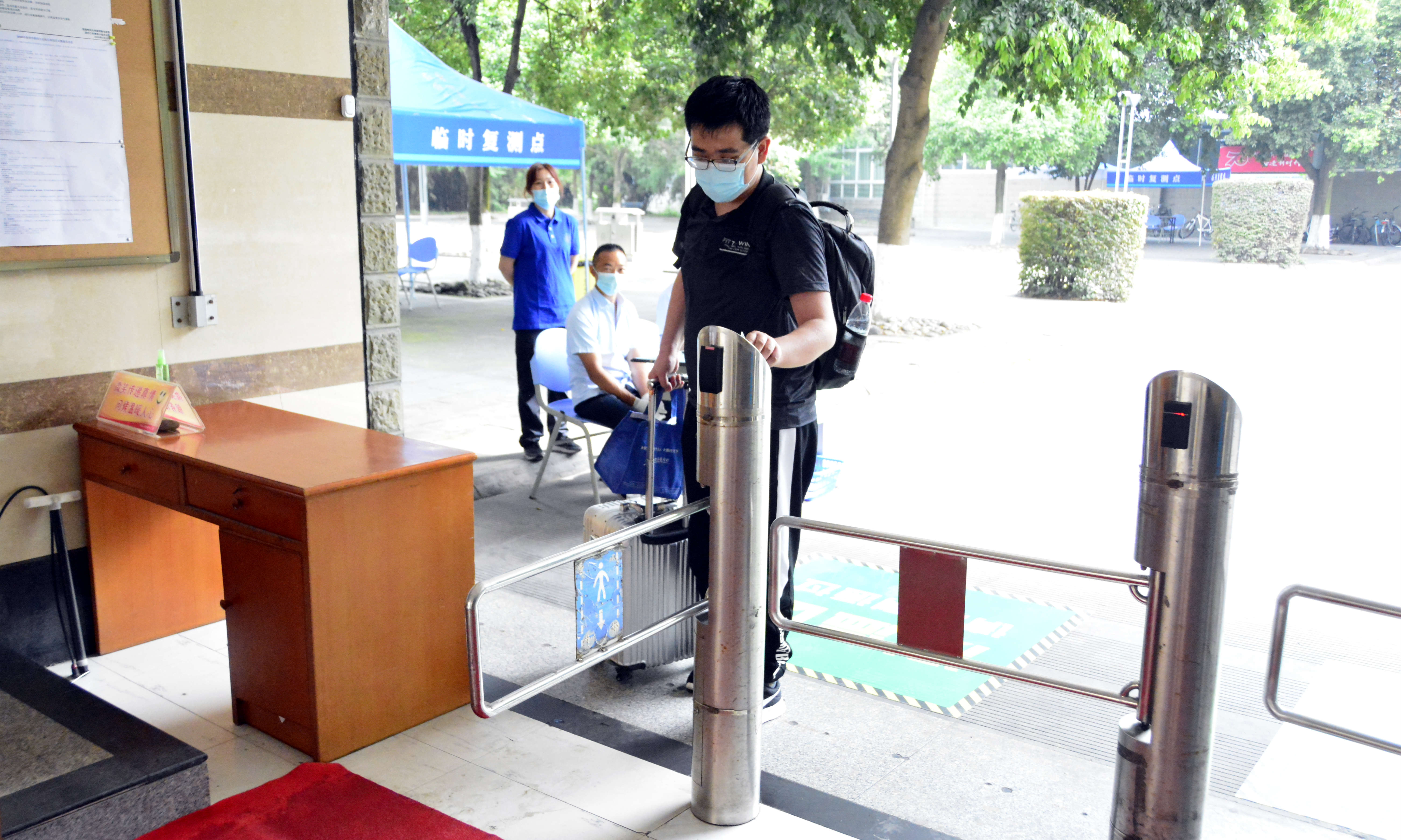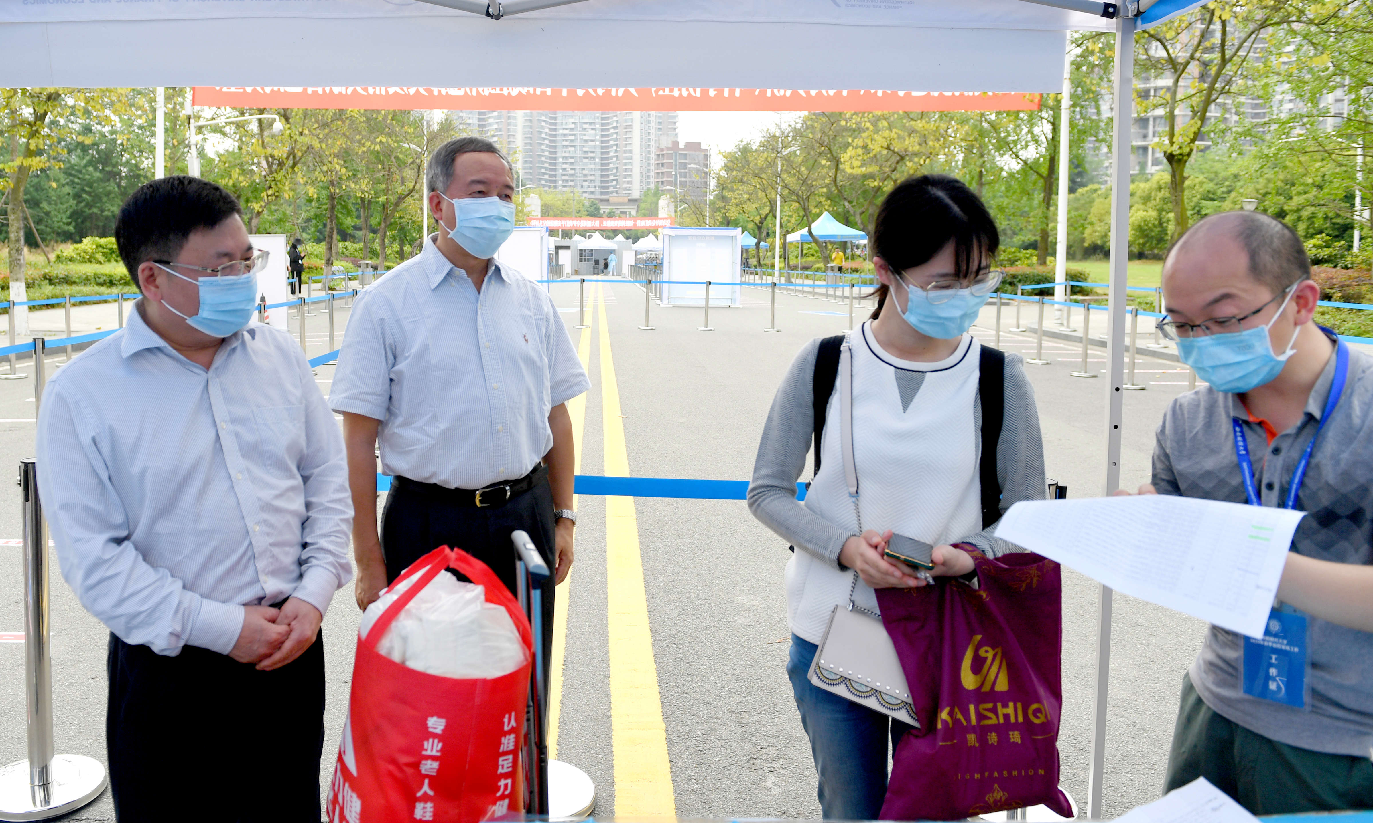 “歡迎回家!”在柳林校區南大門排隊等候區,趙德武、卓志向返校報到的同學送上親切問候。他們與家長、同學親切交談,表達學校關心和對學校疫情防控工作理解支持的感謝。“今天返校的總人數有多少?有無異常情況?”在流行病學調查區,趙德武、卓志前往各學院(中心)點位詳細詢問工作情況,翻閱記錄資料,要求工作人員一定要把工作做到細處,全力做好學生返校復課的相關工作。