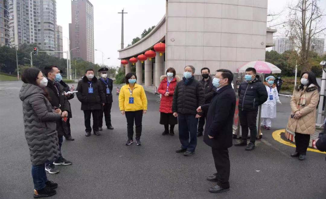 上門登記排查信息、為進出人員測量體溫、對居家隔離人員進行監督……1月31日,農歷正月初七,位于溫江區、居住有學校教職工的生活小區學府尚郡,一支由學校黨員教師組織的志愿者小分隊正有條不紊地開展著防疫工作。