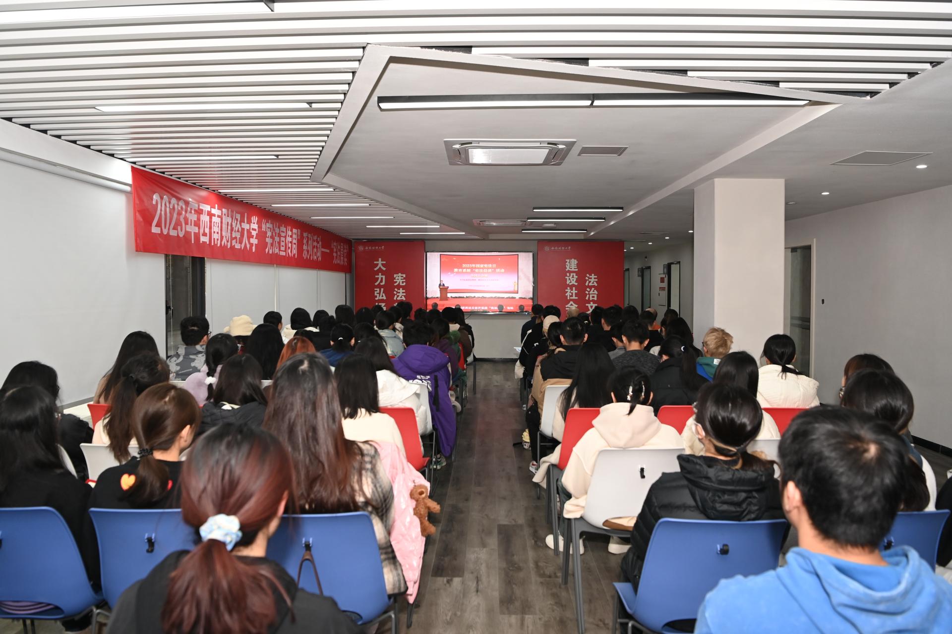 12月4日是第十個國家憲法日。習近平總書記在第十個國家憲法日之際作出重要指示強調,堅定維護憲法權威和尊嚴,推動憲法完善和發展,更好發揮憲法在治國理政中的重要作用。為深入學習宣傳貫徹習近平法治思想,進一步弘揚憲法精神,厚植憲法信仰,教育引導廣大師生增強法律意識、提升法治素養、維護憲法權威,堅定做憲法的忠實崇尚者、自覺遵守者、堅定捍衛者,12月4日上午,學校國家憲法日“憲法晨讀”活動在柳林校區劉詩白書院舉行。學校相關單位負責同志及學生代表參加晨讀活動。
