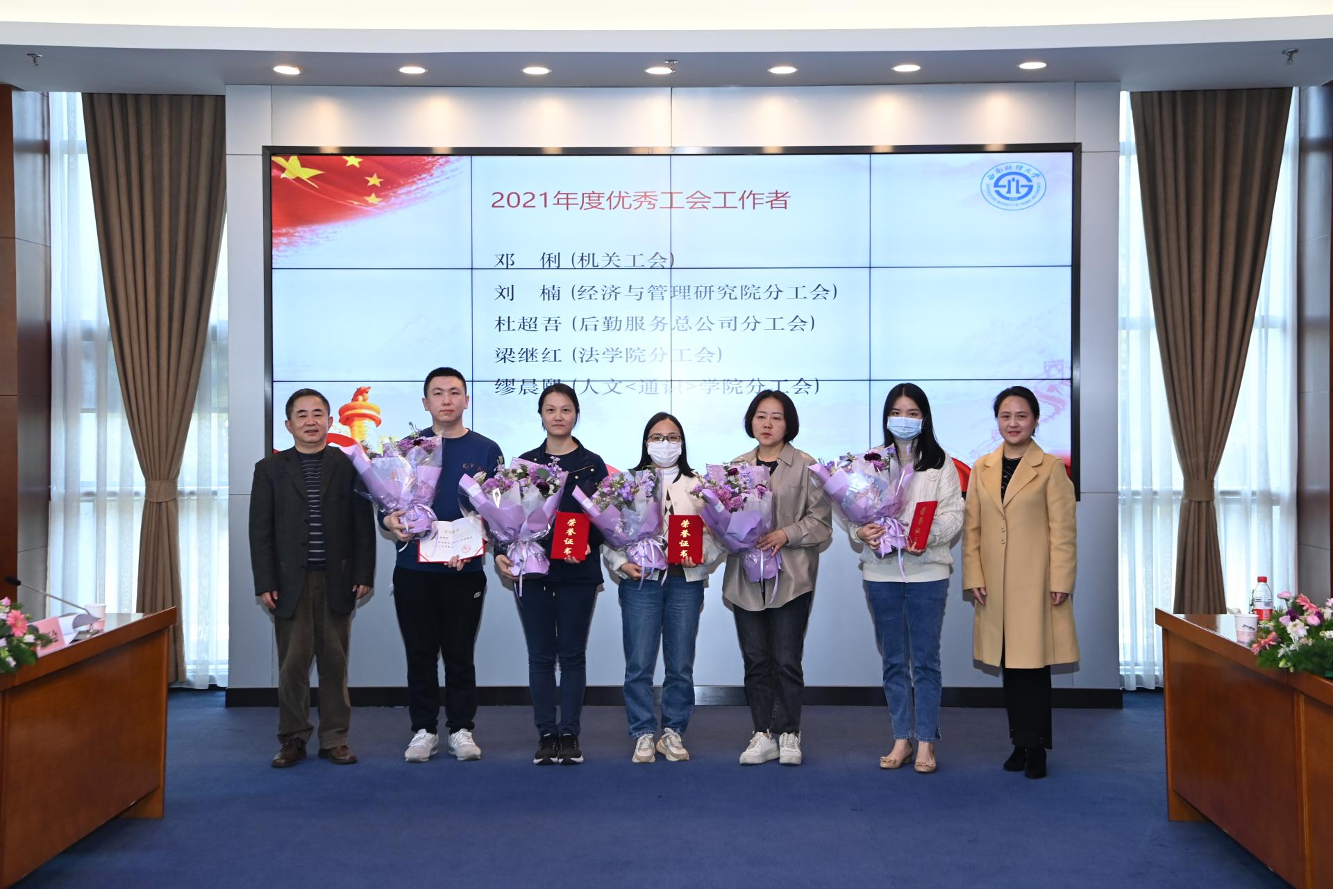 黨委辦公室主任陳宗權(quán)宣讀了學(xué)校2021年度“十佳”女教職工、工會(huì)工作先進(jìn)單位和先進(jìn)個(gè)人的表彰決定,歐兵及職能部門(mén)負(fù)責(zé)人為獲獎(jiǎng)先進(jìn)集體和個(gè)人頒發(fā)了榮譽(yù)證書(shū)并獻(xiàn)上節(jié)日的鮮花。
