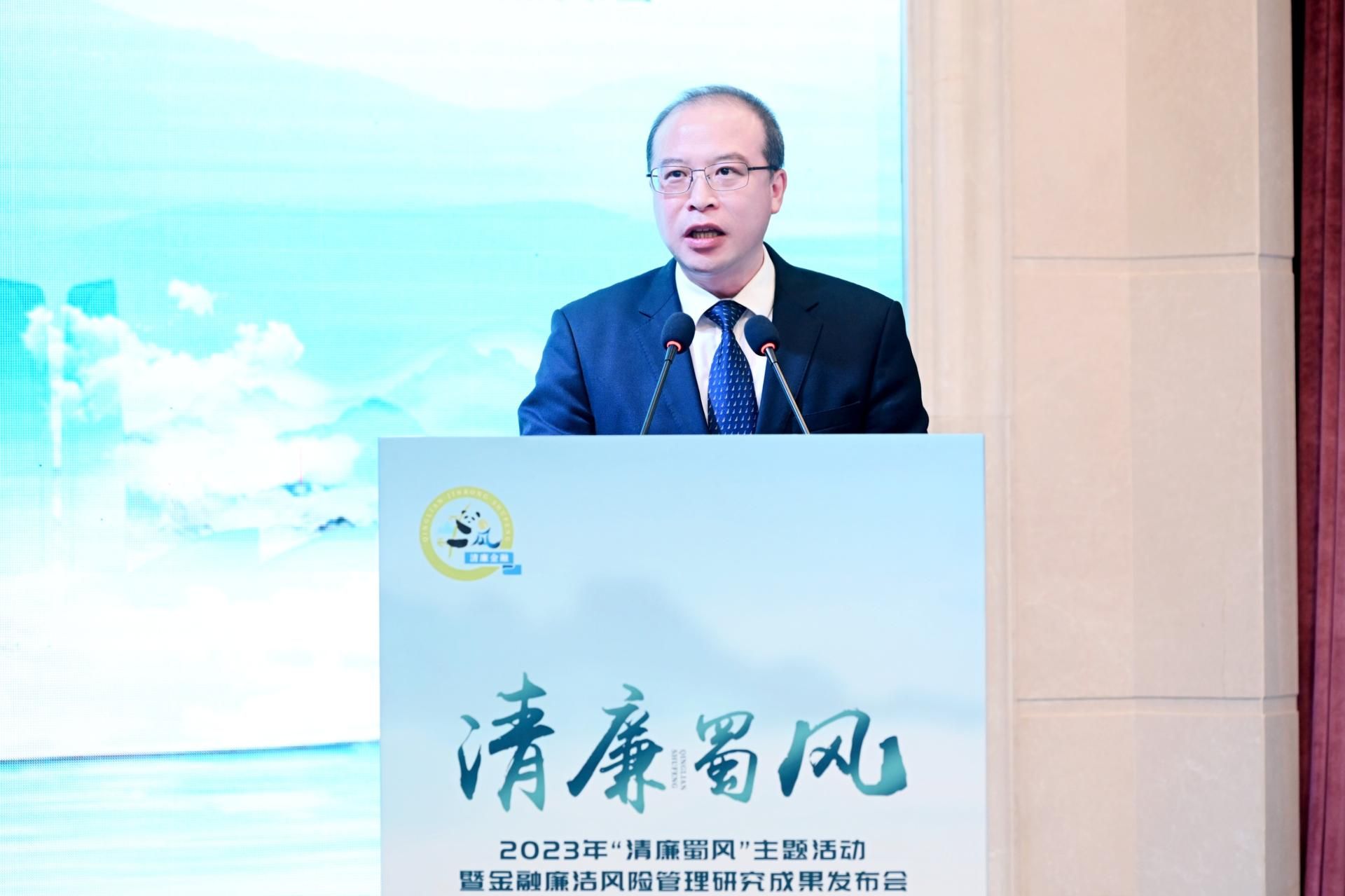 為深入貫徹落實(shí)中央金融工作會(huì)議、中央經(jīng)濟(jì)工作會(huì)議精神,持續(xù)推動(dòng)四川清廉金融文化建設(shè)走深走實(shí),涵養(yǎng)四川金融系統(tǒng)風(fēng)清氣正政治生態(tài),12月14日,國家金融監(jiān)督管理總局四川監(jiān)管局和我校共同舉辦2023年“清廉蜀風(fēng)”主題活動(dòng)暨金融廉潔風(fēng)險(xiǎn)管理研究成果發(fā)布會(huì)。國家金融監(jiān)督管理總局四川監(jiān)管局黨委書記、局長(zhǎng)陳育林,學(xué)校原校長(zhǎng)、西財(cái)清廉金融教育基地負(fù)責(zé)人卓志,學(xué)校黨委副書記、校長(zhǎng)李永強(qiáng)出席活動(dòng)。國家金融監(jiān)督管理總局有關(guān)部門、四川省紀(jì)委監(jiān)委及四川省各金融管理部門負(fù)責(zé)人、有關(guān)專家學(xué)者、在川各銀行保險(xiǎn)機(jī)構(gòu)主要負(fù)責(zé)人共280余人參加活動(dòng)。