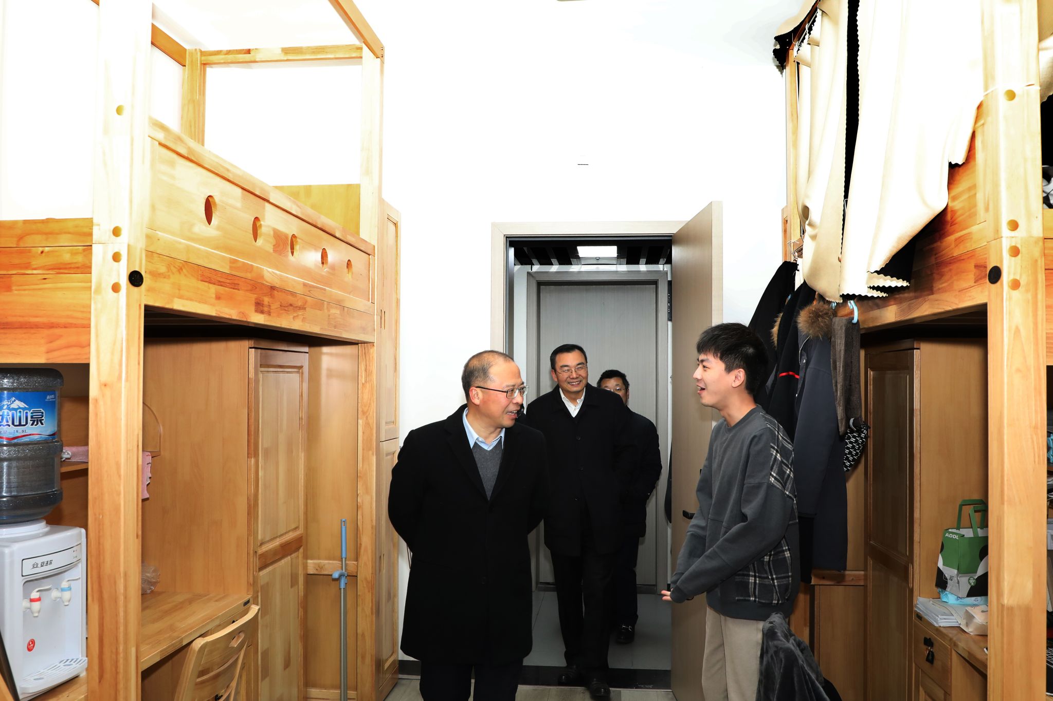 為全面落實教育部、省委省政府和省教育廳關于做好歲末年初安全穩定工作部署和要求,1月23日上午,黨委副書記、校長李永強,黨委常委、副校長馬永強帶隊,黨委辦公室、校長辦公室、保衛處等部門負責同志一道,針對兩校區校園消防和燃氣安全、食品安全、網絡安全、校園交通管理、在建工程安全管理、留校學生管理、留學生管理等重點領域、重要部位開展安全大檢查。