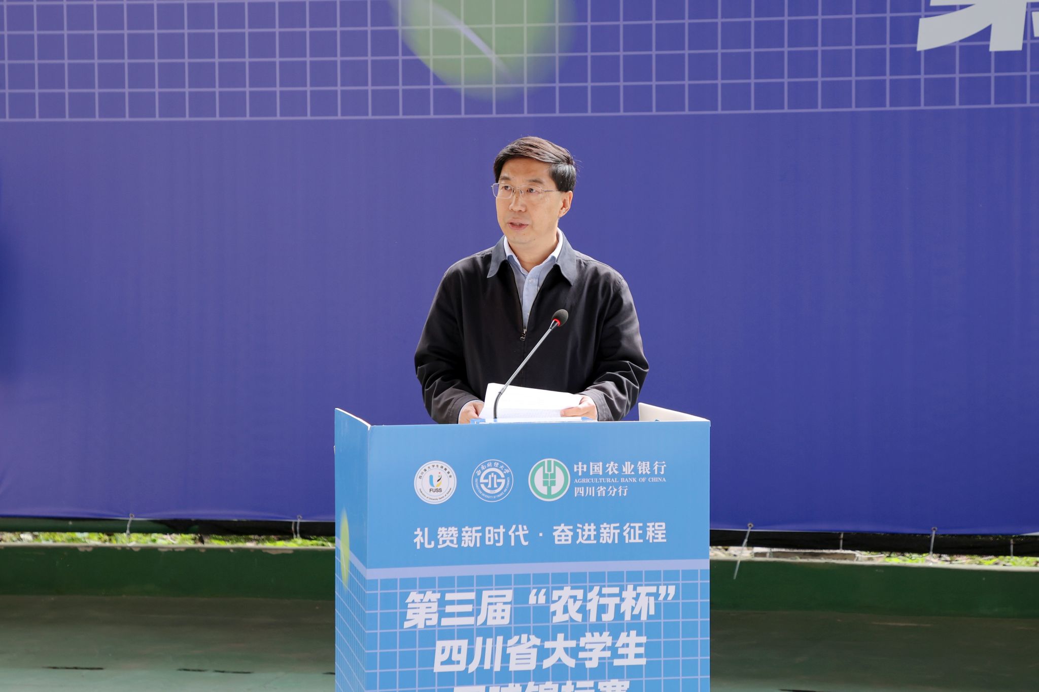 四川省教育廳副廳長石靜,四川省大學生體育協會總顧問、四川省大學生網球協會主席劉青,四川省高等院校網球協會主席賴廷謙,四川省網球協會副主席、新華社四川分社原社長劉欣欣,中國農業銀行股份有限公司四川省分行黨委委員、副行長兼成都分行黨委書記、行長王屹,中國農業銀行股份有限公司四川省分行高級專家兼成都分行黨委委員、副行長朱波,成都市網球協會副主席賀杰,四川省大學生體育協會會長、學校體育學院院長楊遠波,四川省大學生體育協會秘書長、西南交通大學體育學院院長劉江出席開幕式,并為比賽開球。