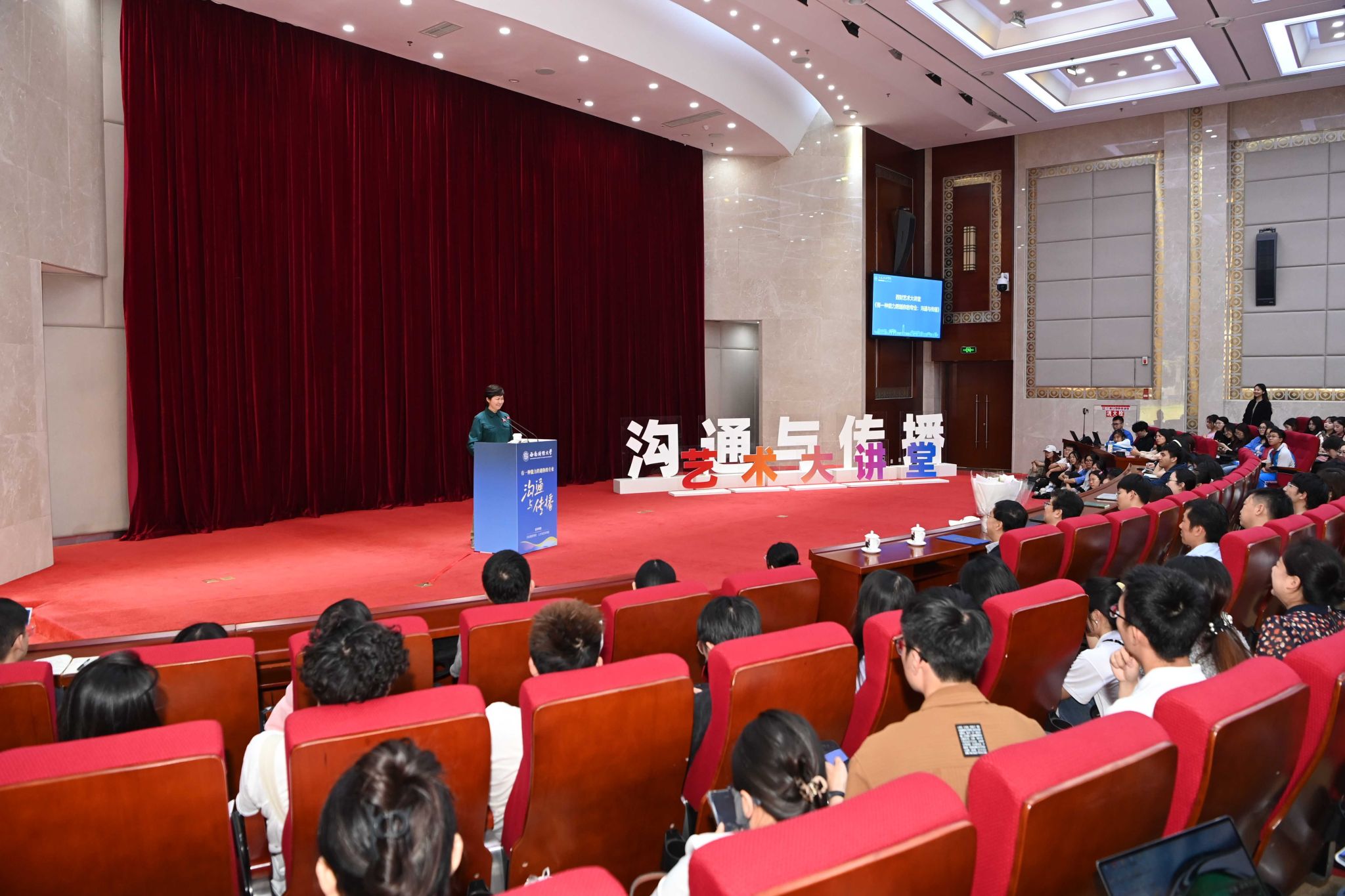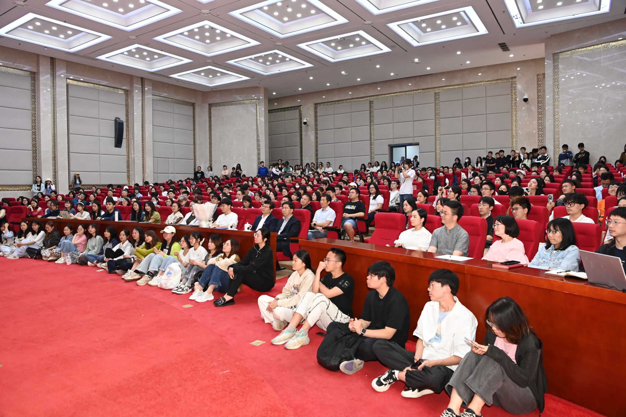 弘遠樓105會議室座無虛席,現場氣氛溫馨而熱烈。講座中,敬一丹分享了自己與學校的情緣,并以經歷為紐帶,以溝通為媒介,親切、真摯且又充滿力量地與現場師生進行了一個半小時的交流和互動。她從“我”“要”“說”三個維度,通過一個個歷久彌新、生動鮮活的案例,以其豐富的媒體經驗和深厚的專業知識,將自己對溝通與傳播的思考和理解向大家娓娓道來,同時也分享了她對新聞事業的熱愛和執著。她特別指出,溝通能力不僅是每個人生活中的剛需,更是需要一生去學習和完善的必修課程。她勉勵同學們在智商情商之外,還要修為“媒商”,勇做勤于思考、勇于實踐,愿溝通、會表達、善交流的時代新人。